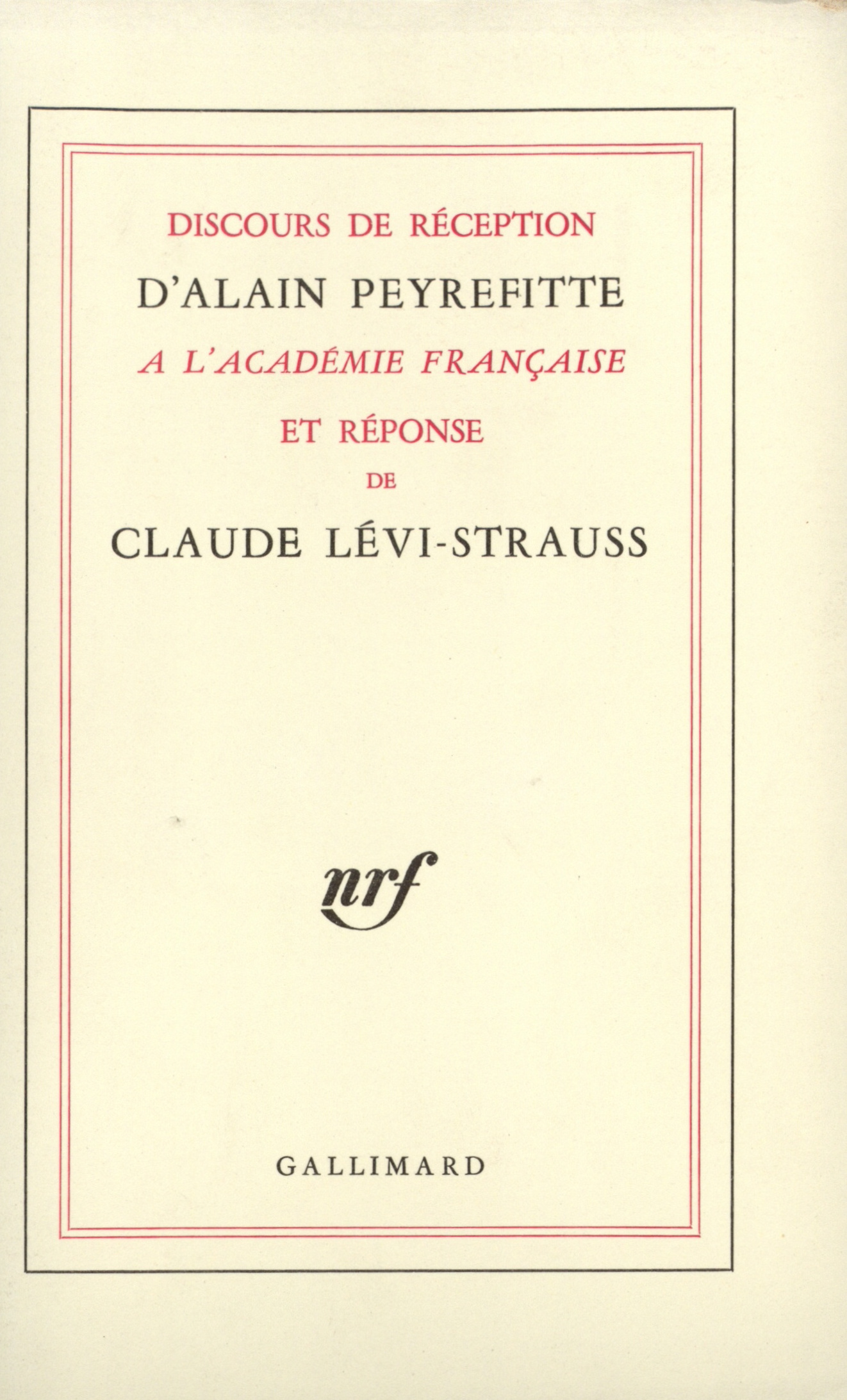 Discours de réception à l'Académie française et réponse de Claude Lévi-Strauss