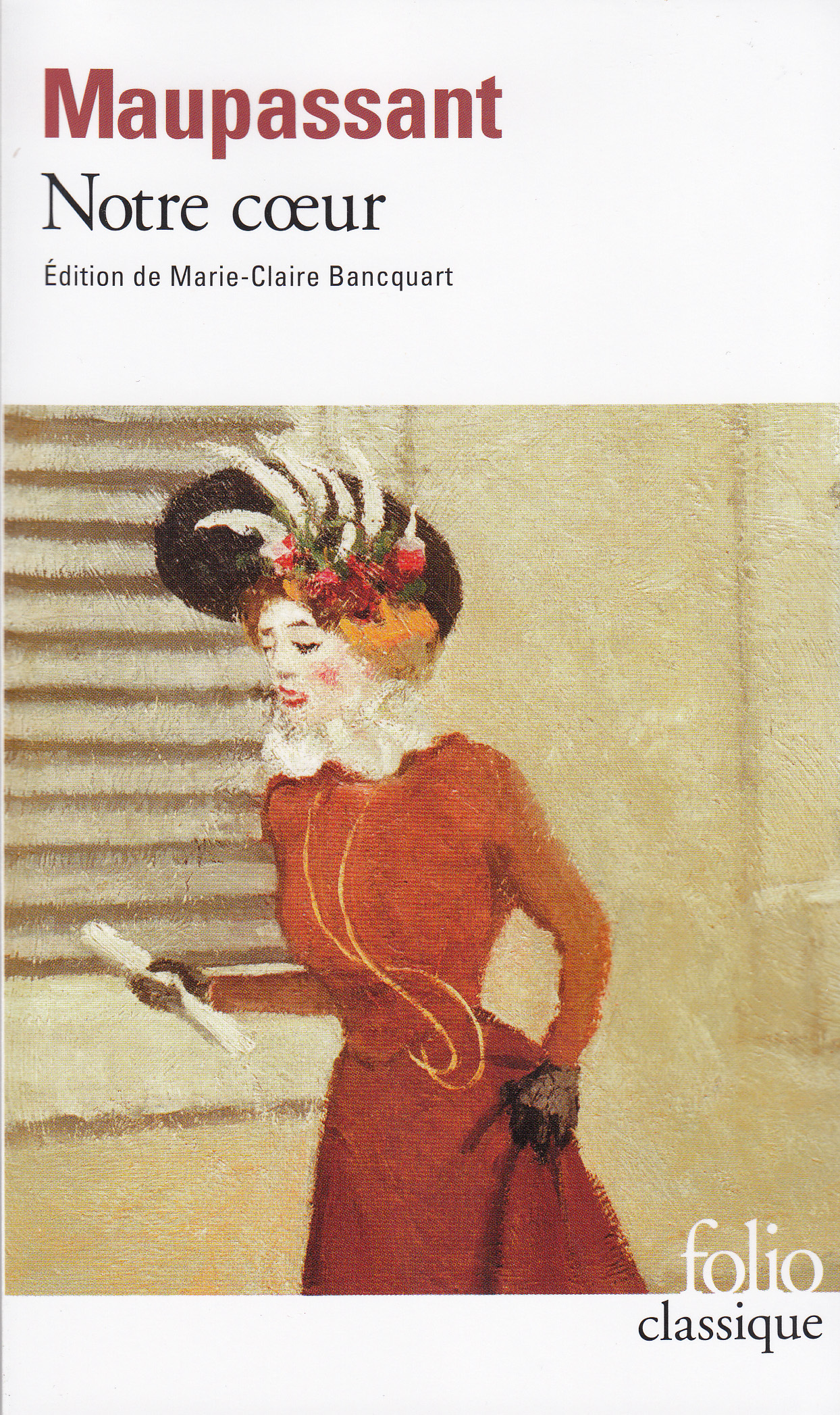 Le roman raconte l'histoire d'une femme du monde incapable de s'abandonner à l'amour. Entourée d'une cour de prétendants, elle ne semble éprise que d'elle-même. Le héros, dévasté par une passion violente et sans espoir, prendra une maîtresse. Mais tout le renvoie à cette femme fascinante et redoutable. Notre coeur, paru en 1890, est un roman douloureux, écrit par un Maupassant déjà malade, et qui dit comme un adieu aux femmes qui ont été le désir, le tourment, et les victimes de sa vie. L'artiste qui se dégrade et écrit de moins en moins fait face à une femme moderne, indépendante mais désespérément seule. Ce remarquable roman, saisissant portrait du Paris des salons mondains, illustre à merveille l'esprit fi n-de-siècle. Il offre aussi un questionnement anxieux sur le destin qui unit l'homme et la femme, dont les coeurs peinent tant à s'accorder.