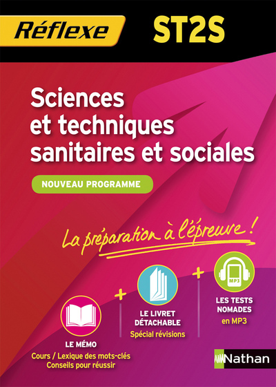 Tout pour comprendre, réviser toute l'année et réussir les épreuves du bac. Ce mémo propose: Les notions essentielles des programmes de Première et de Terminale ST2S Des conseils méthodologiques pour être prêt le jour de l'examen Votre livret détachable spécial révisions: le lexique des mots-clés à savoir par coeur, ainsi que des fiches outils indispensables Révisez autrement et développez votre mémoire auditive grâce aux tests audio proposés gratuitement pour l'achat de ce mémo ! Des tests à télécharger pour réviser à votre rythme. Ecoutez un extrait : www.nathan.fr/reflexe