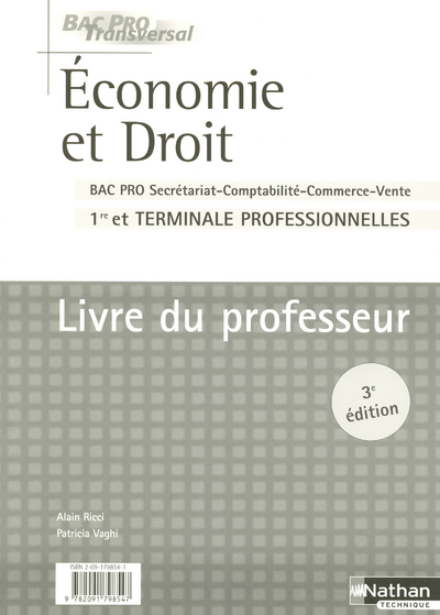 ECONOMIE ET DROIT 1RE ET TERMINALE PROFESSIONNELLES BAC PRO SECRETARIAT COMPTABILITE COMMERCE VENTE