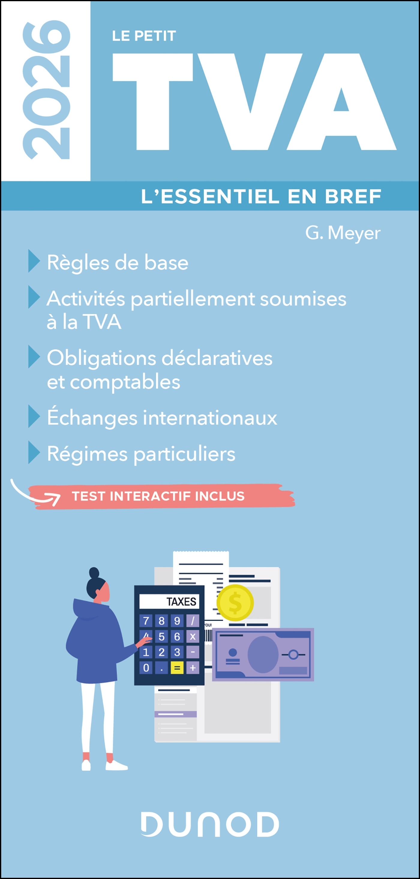 En 48 pages et 16 fiches pratiques , le Petit TVA fournit toutes les notions indispensables pour calculer, déclarer et comptabiliser la TVA , avec de nombreux exemples chiffrés, en présentant notamment : les règles de base les assujettis et les redevables partiels les activités partiellement soumises à la TVA les obligations déclaratives et comptables les échanges internationaux et l'e-commerce les régimes spéciaux et particuliers Le Petit TVA est à jour de la loi de finances 2024 . ++ Inclus : un test interactif pour tester ses connaissances ++ ------------------------------------ → Depuis 20 ans, Les Petits Experts récapitulent les chiffres, données et savoir-faire clés en gestion d'entreprise . Indispensables, précis et pratiques, ils sont structurés en fiches synthétiques, dans un format très accessible de 48 pages. → Avec une vingtaine de titres mis à jour chaque année, ils sont un repère incontournable pour tout étudiant ou professionnel . ------------------------------------