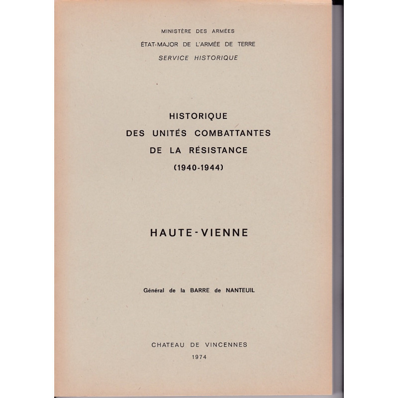 Historique des unités combattantes de la Résistance [1940-1944]. Département : Haute-Vienne