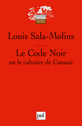 Le livre de Louis Sala-Molins, qui en est à sa cinquième édition, analyse en profondeur et en contexte le Code noir sans reculer devant la nécessité d'aborder la délicate question des responsabilités. « Le Code Noir raconte une très longue histoire qui commence à Versailles, à la Cour du Roi Soleil, en mars 1685 et se termine à Paris en avril 1848 sous Arago, au début de l’éphémère IIe République. En très peu de pages, avec l’aridité qui convient au sérieux des lois, il raconte la vie et la mort de ceux qui n’ont pas d’histoire. » Et l’auteur de conclure que « ni la Raison, ni les Lumières, ni la Révolution, ni évidemment l’Empire n’ont pas tellement de quoi pavoiser, de quoi pouvoir faire honte aux voisins. » Publié pour la première fois en 1987 dans la collection « Pratiques théoriques », cet ouvrage replace le Code Noir dans sa filiation théologique, philosophique et juridique. Il le confronte aux réalités de l’esclavage et à la critique philosophique de son temps, dont il marque cruellement les limites. Par loi, la France a qualifié en 2001 traite et esclavage de « crime contre l’humanité ». Crime imprescriptible donc. Mais choisissant explicitement d’ignorer ce qu’« imprescriptibilité » veut dire, le législateur a refusé de répondre à trois questions : que doit-on réparer, qui doit réparer et comment réparer ?