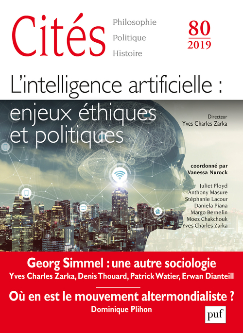 Éditorial par Yves Charles Zarka Pierre Saurel, L'intelligence artificielle et ses avatars : histoires d'un projet métaphysique Juliet Floyd, Turing et l'intelligence artificielle Stéphanie Lacour et Daniela Piana, Faites entrer les algorithmes ! Regards critiques sur les scénarii de la « justice prédictive » Vanessa Nurock, L'intelligence artificielle a-t-elle un genre? François Berger et Michel Dojat, L'intelligence artificielle, mythes et réalités: le regard clinicien Audrey Azoulay, Entretien sur la politique et l'intelligence artificielle II - VIE POLITIQUE Christian Godin, Les mouvements sociaux en France III - VIE INTELLECTUELLE : G. SIMMEL OU L'AUTRE SOCIOLOGIE Yves Charles Zarka, La philosophie et le fondement de la sociologie Denis Thouard, L'individualisation dans la socialisation Patrick Watier, Confiance et société Erwan Dianteill, Simmel, Durkheim, Mauss : autour d'une controverse IV - RECENSIONS