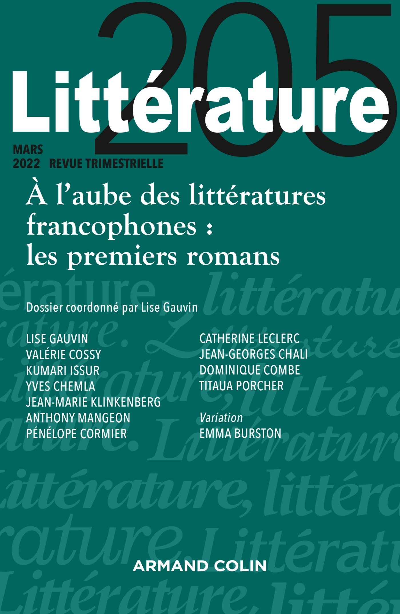 Littérature Nº205 1/2022 À l'aube des littératures francophones : les premiers romans