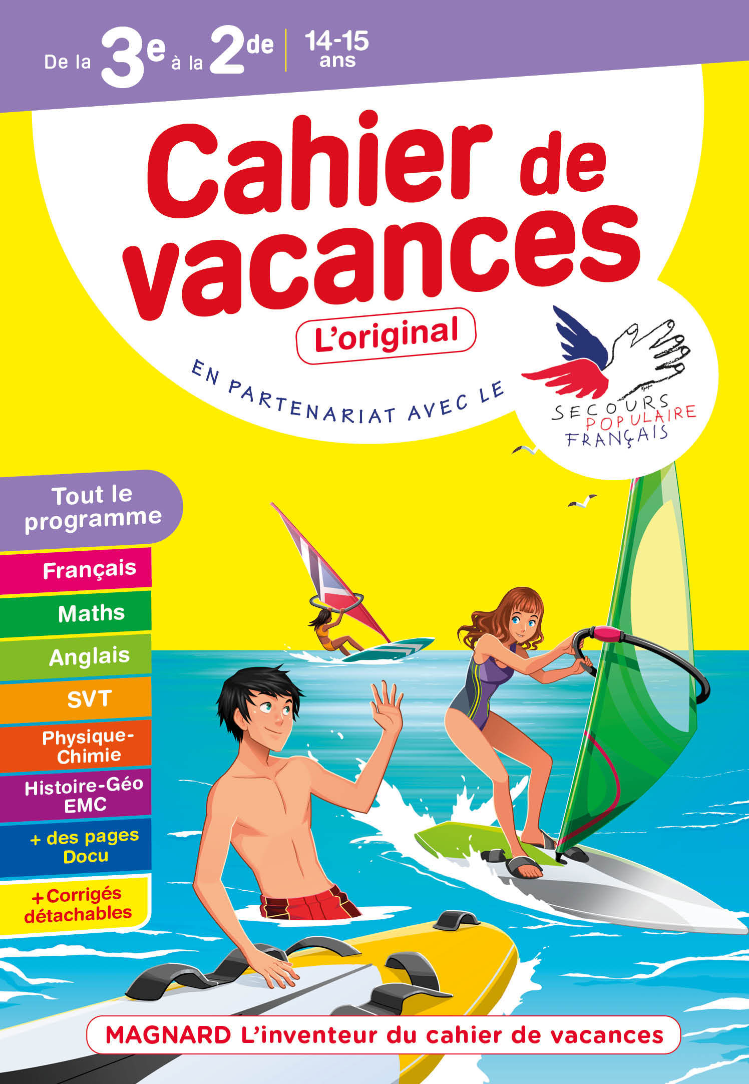 Des séquences de révisions complètes pour préparer efficacement sa rentrée en 2de ! Ce cahier regroupe toutes les matières de l'année : Français, Maths, Anglais, Histoire-Géo-EMC, Physique-Chimie, SVT, Technologie. Des séquences d'entraînement avec : les notions à maîtriser, des rappels de cours , des exercices variés , et des quiz-bilans Les corrigés détachables complets Un parcours Histoire-Géo-EMC dont vous êtes le héros : un voyage dans le temps, l’espace et un parcours citoyen pour être le héros du programme ! Pour aller plus loin : des pages Docu riches et illustrées pour aller plus loin, avec un mini-test : vive le cinéma ! ; Queneau et le livre qui n’en finit plus ; il était une fois l’histoire des femmes ; le génome humain ; l’art nouveau… Ce cahier de vacances a été rédigé par des enseignants et est conforme aux programmes. En partenariat avec le Secours populaire français.