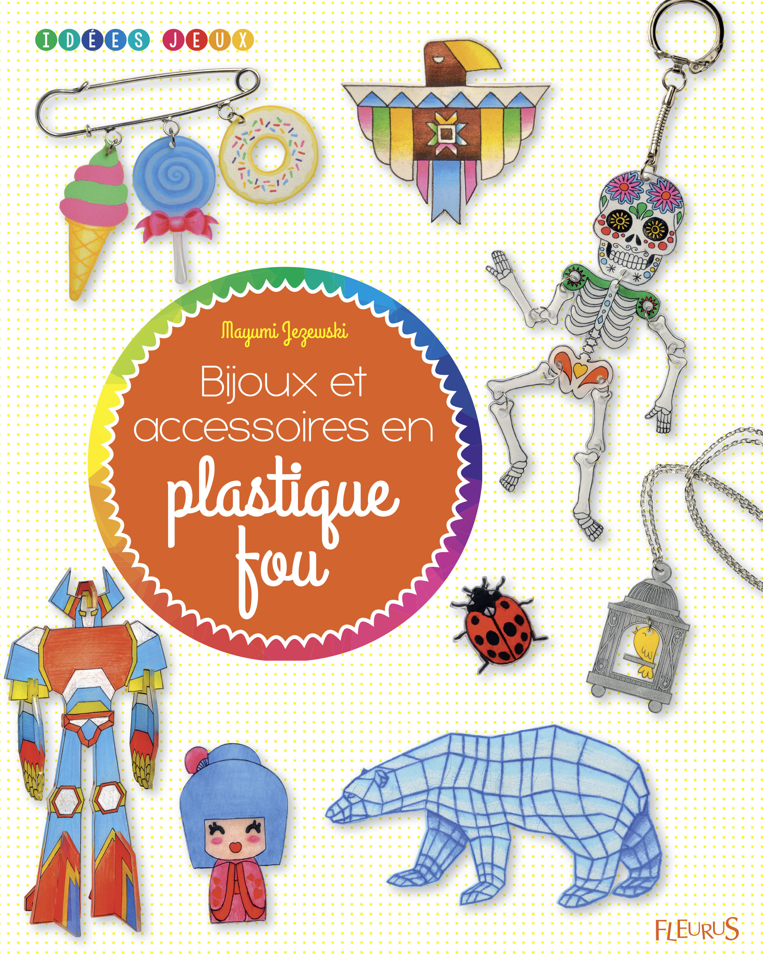Avec le plastique fou, fais tourner toutes les têtes ! Découvre cette matière étonnante que l’on peut colorier comme on veut, puis qui durcit et rétrécit à la cuisson. Animaux, fleurs, robots, motifs amérindiens, dessins géométriques … il y en a pour tous les goûts ! Choisis tes motifs préférés, décalque-les et réalise des magnets, des porte-clés, des bijoux, des figurines ou même des décors ! Ouvre les portes de ton imaginaire et crée sans limite ! Avec 125 patrons
