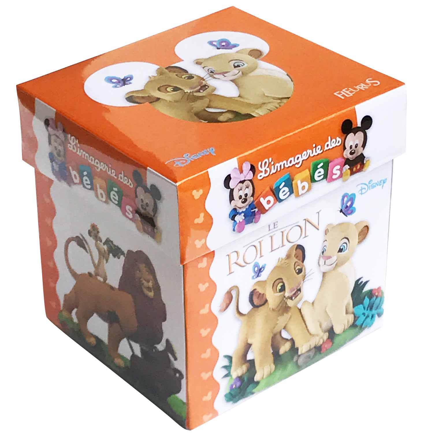 Un magnifique coffret cadeau décoré avec des images du Roi Lion. Le coffret contient un livre des bébés Disney pour découvrir la vie du Roi Lion, quatre cubes pour s'amuser et un joli cadre pour coller sa photo. Un bandeau maintient le coffret fermé et présente ce qu'il contient.