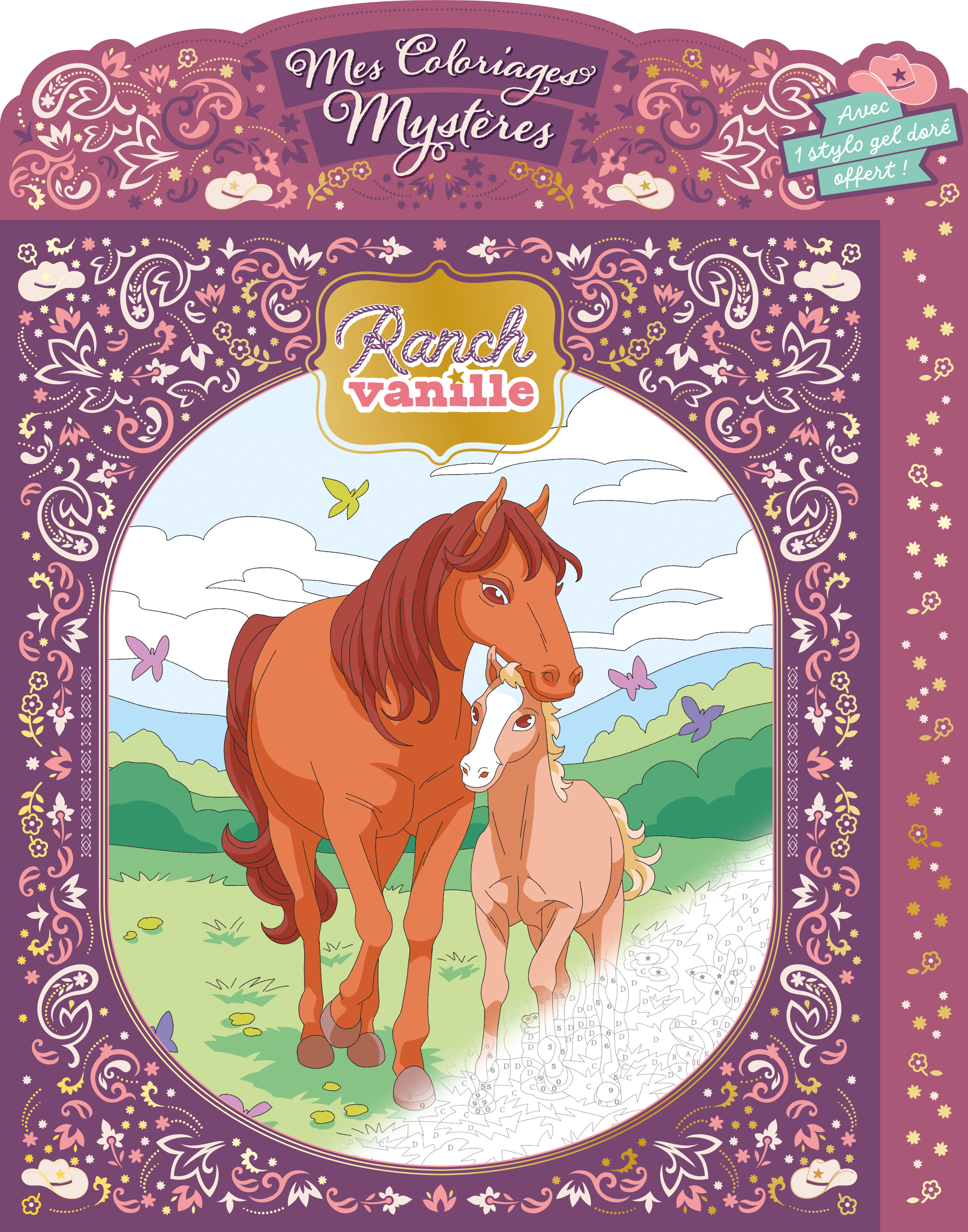 Un livre de coloriages mystères au papier épais pour retrouver l'univers du Ranch Vanille ! Pour révéler les magnifiques chevaux et super cavaliers de ce pensionnat équestre haut en couleur, il suffit de colorier les scènes avec le stylo gel doré offert dans le livre et des feutres en respectant le code couleur.