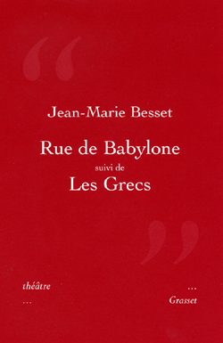 Les pièces: Rue de Babylone Tard dans la nuit, début janvier, à Paris. Un homme, directeur de journal, rentre dans le bel immeuble haussmannien où il habite. Un sans-abri empêche la lourde porte vitrée de se refermer. Une rencontre commence, là, dans ce hall d'immeuble. Parce que l'homme n'a pas sommeil, et que, chez lui, sa femme et ses enfants dorment paisiblement, que tout repose, il laisse la conversation s'engager. Or, l'un a l'air d'en savoir plus sur l'autre que prévu. Malgré les apparences, seraient-ils plus liés qu'ils ne pensent ? Où il apparaît que le vie des autres est au moins aussi complexe que la sienne propre. Les Grecs A quarante ans, H. et L. forment un couple encore jeune, l'oeil vif, le pelage luisant. Ils vivent avec leurs deux jeunes fils dans une belle maison d'architecte, près de Paris. Ce samedi soir, ils reçoivent à dîner leur ami A., plus exactement le meilleur ami d'adolescence de L., retrouvé depuis peu, avec qui ils sympathisent tous deux. Les enfants sont couchés et le dîner se termine. La conversation s'est engagée sur les héros de L'Iliade d'Homère. Sous le couvert des références littéraires, A. se révèle partisan de la guerre. La guerre contre Troie. La guerre contre l'ordre établi. La guerre contre la famille et contre le couple. A. et L. s'étaient connus en Grèce, lorsqu'ils avaient dix-huit ans. Ils avaient été brièvement amants, à l'époque, avant que le goût d'A. ne se fixe sur les garçons. La vie les a séparés. Ils se revoient depuis quelques mois, par la rencontre coïncidente d'H. avec A., et d'un rapport de désir souterrain qui existe entre les deux hommes, à l'insu de L. Sous l'effet de la boisson et de la frustration à l'image de ce couple « parfait » A. se déchaîne contre L., qu'il traite de bourgeoise puritaine et coincée, sous ses dehors progressistes. Furieuse, L. monte se coucher. Ivre, affalé dans le canapé, H. invite alors A. à lui faire une fellation. Survient alors O., un jeune Algérien sans-papiers qui a suivi A. chez ses amis. Il est hébergé chez A. depuis quelques semaines. Ils ont une relation sado-maso, purement sexuelle pour A., et assez sentimentale pour O. qui rêve d'une vie de couple avec son ami français, avec les avantages que cela pourrait procurer... En chroniquant le glissement progressif de la culture au sexe, du sexe au sentiment, du sentiment à la famille, Les Grecs dynamite l'hypocrisie, les mensonges et les malentendus sur lesquels repose la famille dite « nucléaire ».