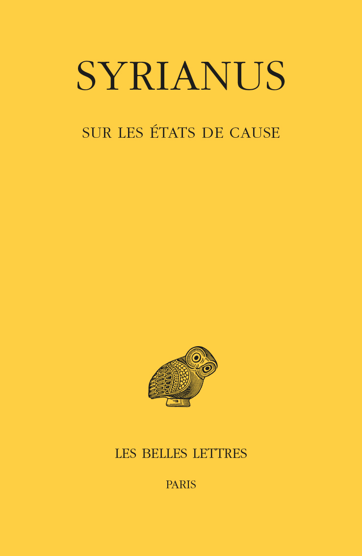Les deux textes mis à la disposition du public dans cette édition critique, accompagnée d’une traduction et de notes, nous ont été transmis sous le nom de Syrianus. Ils sont contemporains du philosophe et commentateur néoplatonicien Syrianus d’Alexandrie († 437), et très probablement de lui. Ce Syrianus, maître notamment de Proclus, pratiquait dans son enseignement le commentaire de textes anciens. On connaît de lui des commentaires sur Aristote, Platon, Homère, et donc, peut-on croire, d’Hermogène (sur les état de cause et le style), ce qui met ce rhéteur en très bonne compagnie, et ce qui constitue un témoignage de plus de l’intérêt porté à la rhétorique par les philosophes de ce temps. Sur la question des états de cause, on a de lui les deux ouvrages édités ici, un commentaire et un traité, dans cet ordre. Le commentaire est fait de scolies, qui reprennent et expliquent pas à pas le texte d’Hermogène. Ces scolies continuent et enrichissent la doctrine de nombreux commentateurs devanciers. Plus tard, sur la base de ce travail, Syrianus a choisi d’exposer ce sujet sous la forme d’un traité à part entière, remarquable notamment par ses définitions rigoureuses des quatorze, et non plus treize, états de cause. C’est une synthèse des progrès de la doctrine à cette époque.