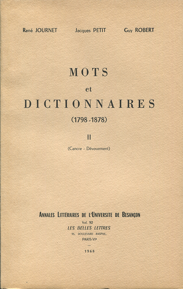 Mots et dictionnaires, 1798-1878