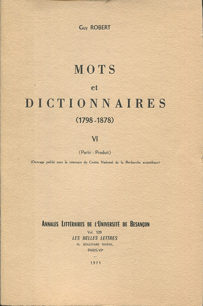 Mots et dictionnaires, 1798-1878