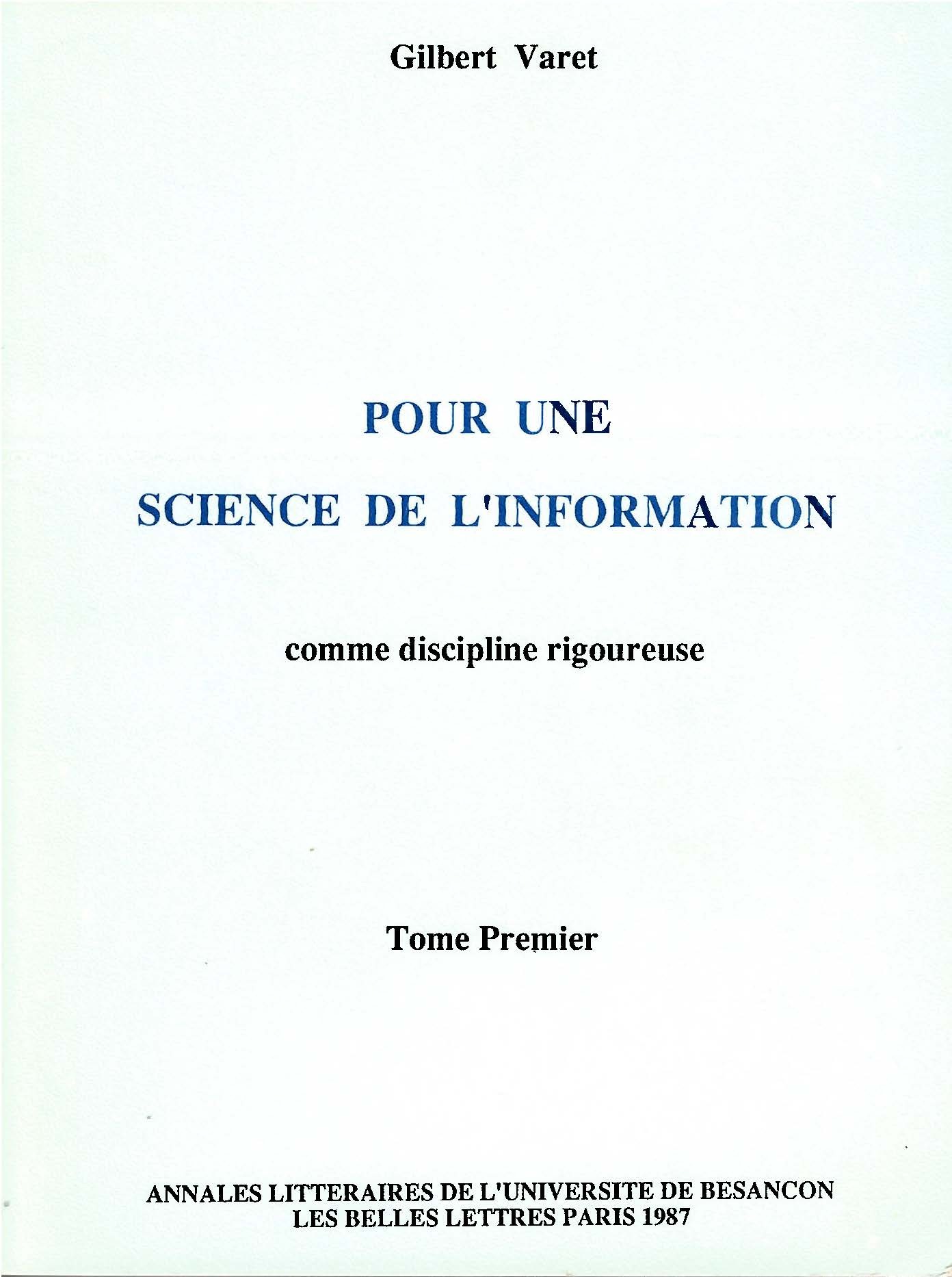 Pour une science de l'information comme discipline rigoureuse