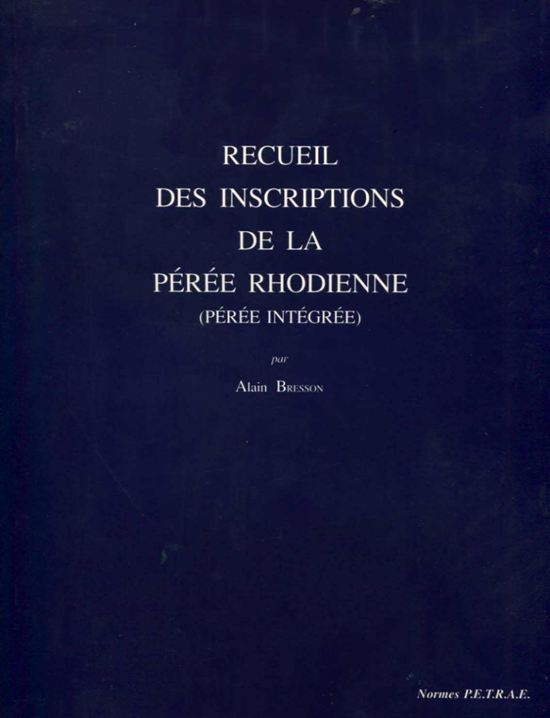 Recueil des inscriptions de la Pérée rhodienne (Pérée intégrée)