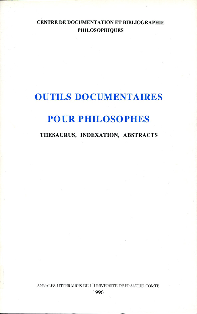 S'ils ne veulent rester indéfiniment à la remorque des autres, les philosophes se doivent d'étudier l'adaptation à leurs disciplines des procédures modernes du traitement documentaire. Ce recueil d'études et de documents illustre quelques-unes de ces approches, sans dissimuler les difficultés qu'elles rencontrent et les interrogations qu'elles soulèvent. Ces études sont nées des Journées organisées à Besançon par le CENTRE DE DOCUMENTATION ET BIBLIOGRAPHIE PHILOSOPHIQUES. Initié naguère par Gaston Berger, ce Centre unique en son genre dans ce domaine est le lieu naturel pour les échanges de vues sur le sujet. On souhaite que ce volume contribue à attirer l'attention des professionnels de la philosophie sur un problème qui les concerne tous, et qu'il soit le premier d'une série à développer avec leur concours. On accueillera volontiers suggestions et contributions.