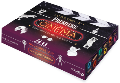 600 questions sur l'histoire et l'actualité du cinéma servies sur un plateau. Devenez le meilleur réalisateur ! Lancez le dé, progressez sur le " plateau " et mettez à l'épreuve vos connaissances de cinéphile, votre curiosité de spectateur et votre ouverture d'esprit pour être le premier à gravir les marches du succès ! Un jeu inédit, à la fois culturel, enrichissant et divertissant, avec un prestigieux partenaire : le magazine Première ! Obtenez d'abord votre carte sésame : votre pion-réalisateur, puis, au gré des coups de dés, progressez sur le plateau et répondez correctement aux questions des six rubriques : Comédie, Horreur, Fantastique/Science-fiction, Action/Aventure, Drame et Suspense. Surmontez les obstacles Tops et Flops, couvrez un maximum de genres cinématographiques, arrivez à temps et recevez le prix du meilleur réalisateur ! Le matériel : un plateau de jeu – 8 pions-cartes réalisateur, 50 cartes " Top " ou " Flop ", 100 fiches 600 questions, un livret pour la règle du jeu et les réponses, 60 jetons rubriques, 1 dé. Le but du jeu : après un parcours cinématographique ponctué des imprévus du métier de réalisateur, il s'agit d'arriver le premier sur la case " arrivée " doté de ses 6 jetons (un par rubrique). Diversité des questions : vrai-faux, intrus, question ouverte, QCM, remise dans l'ordre, etc. pour que chacun puisse avoir des occasions de bonnes réponses. Quelques exemples de questions – réponses : Comédie : Question : Toy Story, premier long-métrage des studios Pixar, est également le premier film entièrement réalisé par ordinateur. Vrai ou faux ? Réponse : Vrai. Lors de sa sortie en 1995, Toy Story révolutionne le cinéma d'animation grâce à son logiciel d'images de synthèse PhotoRealistic RenderMan. Depuis, la méthode a été éprouvée sur de nombreux films, animés ou non, tels que Le Roi Lion, Titanic, Avatar ou Le Seigneur des Anneaux. Horreur : Question : Qui est l'écrivain encore en activité le plus adapté au cinéma et à la télévision? Réponse : Stephen King, adapté près de 250 fois depuis 1976. Fantastique/Science-fiction : Question : Reproduisez le salut vulcain effectué par Spock dans Star Trek. Réponse : Placez le majeur contre l'index et l'annulaire contre le petit doigt de façon à créer un V avec la main, présentée paume face à l'interlocuteur. Action/Aventure : Question : Avant de jouer dans The Walking Dead ou d'incarner le Punisher dans la série éponyme de Marvel, Jon Bernthal a été footballeur professionnel en Russie. Vrai ou faux ? Réponse : Faux. Originaire de la banlieue de Washington, D.C., Jon Bernthal est parti étudier la comédie au Théâtre d'Art de Moscou après le lycée. Dans la capitale russe, c'est en tant que joueur de baseball professionnel qu'il occupe son temps libre. Drame : Question : En remportant, en 2015, l'International Emmy Award de la meilleure Série Dramatique, la série policière Engrenages devenait la première série française à remporter ce trophée prestigieux, créé en 2002. Vrai ou faux ? Réponse : Faux. Si la troisième saison d'Engrenages avait bien été la première série française à être nommée, en 2010 (sans obtenir le prix), les séries Braquo (2012) et Les Revenants (2013) lui ont soufflé l'honneur d'être les premières sur le fil. Suspense : Question : Reproduisez la réplique de Taxi Driver, reprise plus tard dans La Haine de Mathieu Kassovitz, qui a rendu célèbre Robert de Niro. Réponse : Travis Bickle, le personnage incarné par De Niro, s'entraîne devant la glace à prononcer la phrase : "C'est à moi que tu parles?', "You're talking to me?' en anglais. Pour plus de véracité (et d'hilarité), ne pas hésiter à faire la moue de Robert de Niro. Carte Top et Flop : Top : Lors d'un casting, vous trouvez la future star humoriste du cinéma. Votre équipe est au complet et votre film comédie décolle. Gagnez le jeton " Réalisation Comédie " si vous ne l'avez pas ou rejouez. Flop : Votre producteur est mêlé à une sombre histoire de harcèlement. Il quitte l'équipe du tournage. Retournez à la case Départ.
