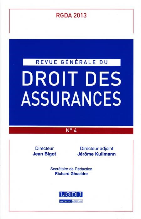 REVUE GENERALE DE DROIT DES ASSURANCES N 4 - 2013