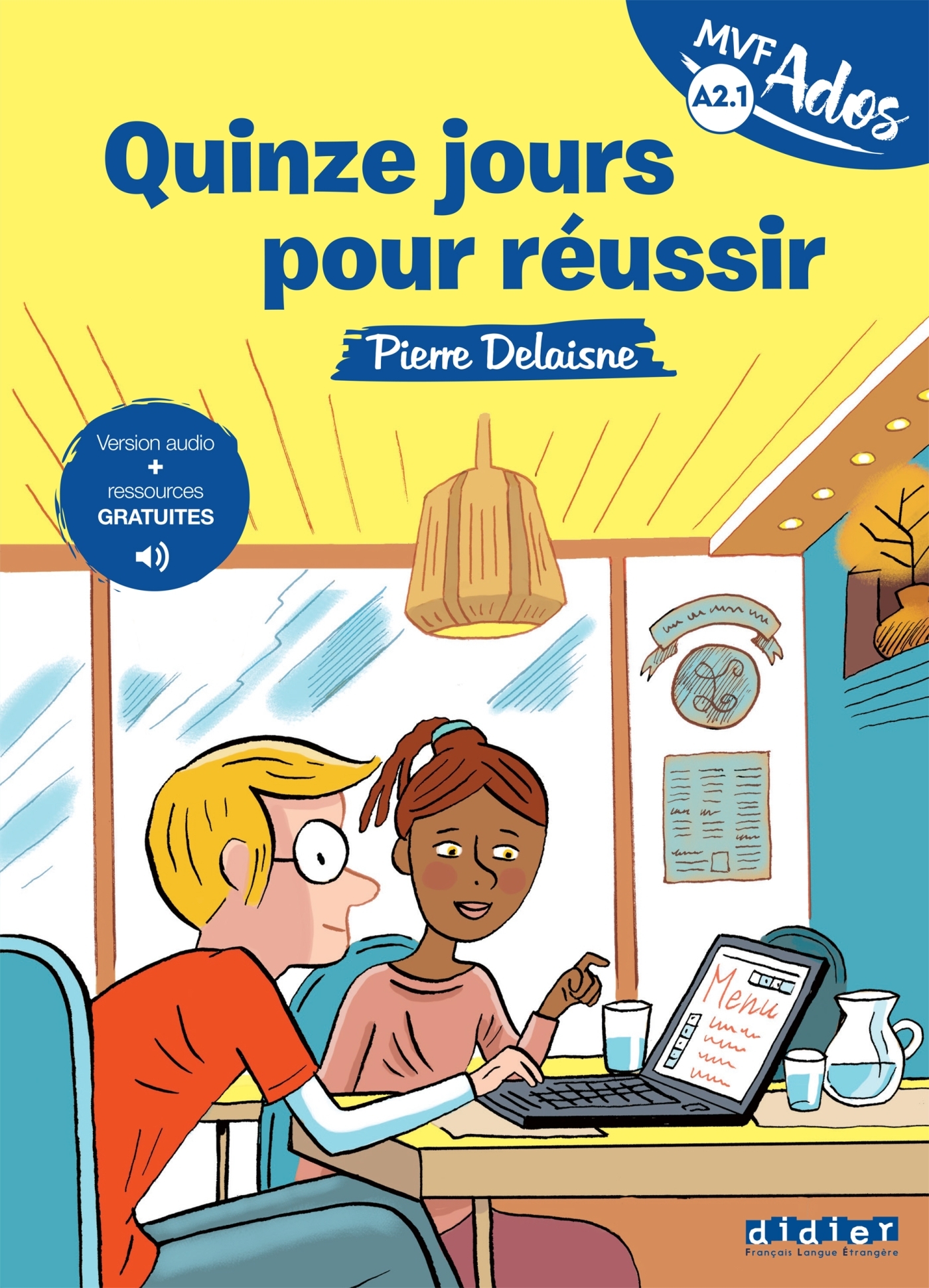 Résumé : « – Alors, comment va papa ? demande Tommy à Violaine. – Il ne va pas très bien : il doit encore rester quelques jours à l’hôpital. – Nous sommes déjà mercredi. Dans huit jours, c’est l’inauguration. Sans papa, ce n’est pas possible. – On peut y arriver, mais je ne peux pas tout faire toute seule, Tommy. J’ai besoin de l’aide de Robert, mais aussi de l’aide de Julie et surtout, j’ai vraiment besoin de toi. » Quinze jours avant l’ouverture de son restaurant, le père de Tommy a un accident de voiture et se retrouve à l’hôpital. Il est encore possible d’organiser la grande fête d’ouverture du Petit Gourmand, mais il faut faire vite. Qui va aider Tommy ? Est-ce que la fête aura lieu ? Feuilleter un extrait du livre : https://bit.ly/49qENrM En + de votre livre : un accès direct aux audios et aux activités interactives en flashant les pages avec l’application didierfle.app . Et pour poursuivre son apprentissage ou animer la classe, la méthode propose des ressources complémentaires ( pour l’apprenant·e et/ou l’enseignant·e) téléchargeables gratuitement sur le site dédié www.mondesenvf.com : les audios du livre ; des fiches de compréhension du texte pour accompagner la lecture. Également disponible à la vente sur la eboutique.didierfle.com : le livre numérique Pour accéder directement à votre ouvrage et à ses ressources sur la plateforme Educadhoc et bénéficier de toutes les fonctionnalités de celle-ci. LA COLLECTION MONDES EN VF ADOS, ce sont des romans illustrés, destinés aux adolescents, pour le plaisir de lire en français sur 4 niveaux (A1.1, A1.2, A2.1 et A2.2).