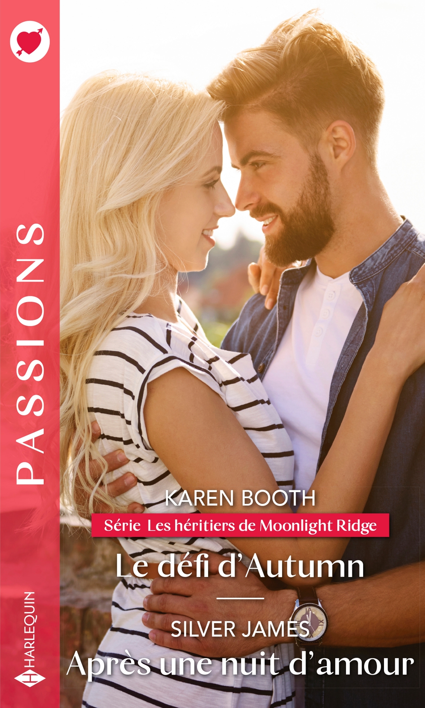 Le défi d’Autumn , Karen Booth Série « Les héritiers de Moonlight Ridge » – Tome 2/3 Trois frères se réunissent pour sauver l’hôtel familial… Autumn est bouleversée. Quittée par son fiancé la veille de son mariage, elle vient de perdre toute crédibilité en tant que wedding planner … Or, maintenant que sa réputation est ruinée, son travail à Moonlight Ridge est menacé. Grey Holloway, un des héritiers du domaine, s’est montré parfaitement clair : si elle veut conserver son poste, elle devra le convaincre que l’amour n’est pas qu’une illusion. Un défi pour elle car, si Grey fait rêver les femmes, il est surtout un séducteur réfractaire à tout engagement… Après une nuit d’amour , Silver James Profondément indépendante, Britt fait tout pour éviter Cooper, un insupportable beau parleur que le destin ne cesse de mettre sur sa route. Deux fois déjà, elle l’a quitté après une nuit d’amour époustouflante, pour revenir ensuite dans ses bras… Mais aujourd’hui il n’est plus question de fuir, car Britt attend des jumeaux de Cooper !