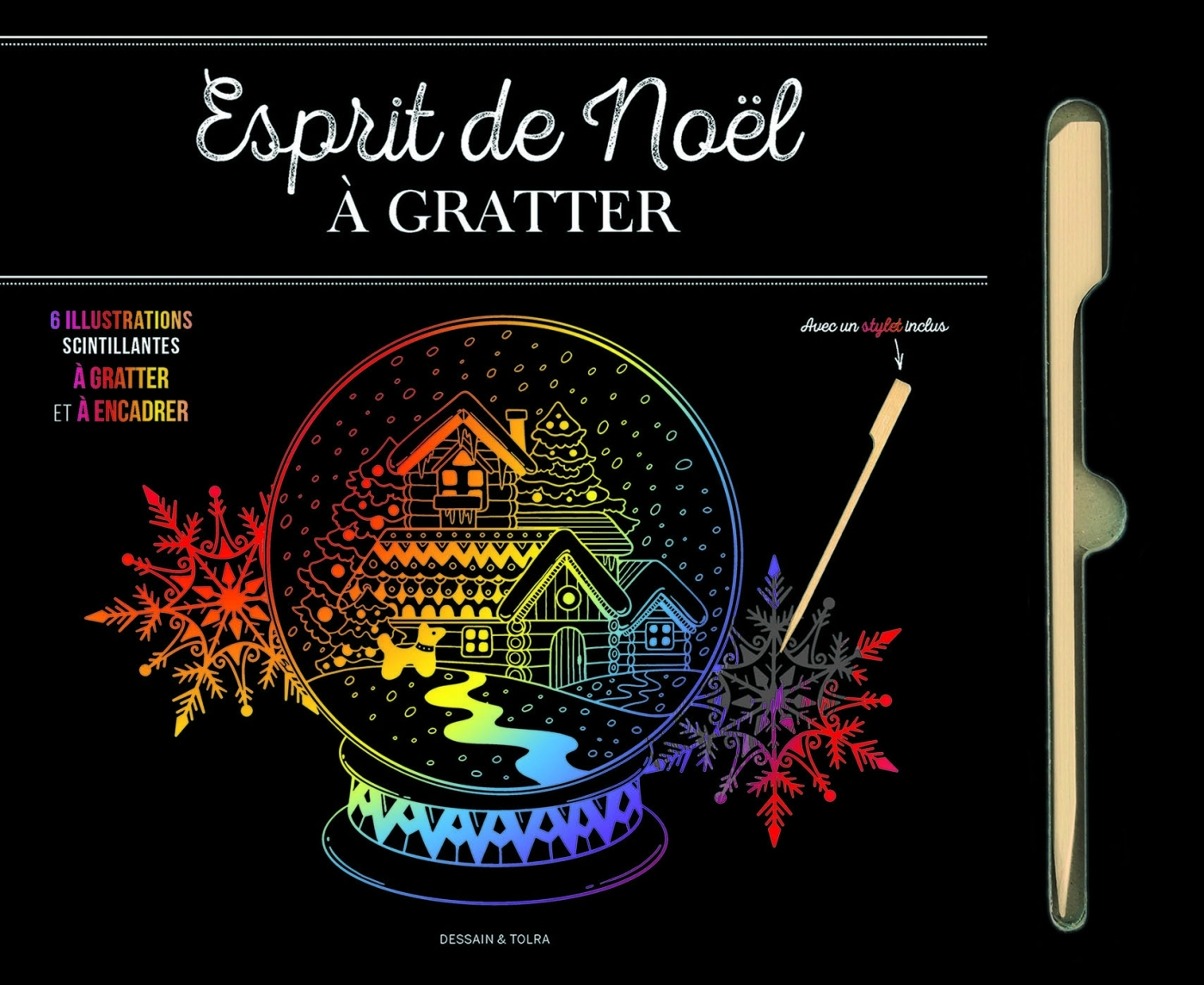 6 illustrations festives à gratter et à encadrer Boule de neige, traîneau rempli de cadeaux… découvrez dans ce livre 6 coloriages à gratter détachables ornés de décorations et décors typiques des fêtes de fin d’année. Choisissez le modèle qui vous inspire et munissez-vous du stylet inclus. Grattez les contours des dessins, leurs fins ornements : ils s’illuminent d’un superbe dégradé pour un effet coloré ! Au gré de vos envies, enrichissez votre illustration de motifs, de dessins, de textes… Et découvrez quelles nuances se cachent derrière le fond noir. Suivez votre inspiration, tout est permis !