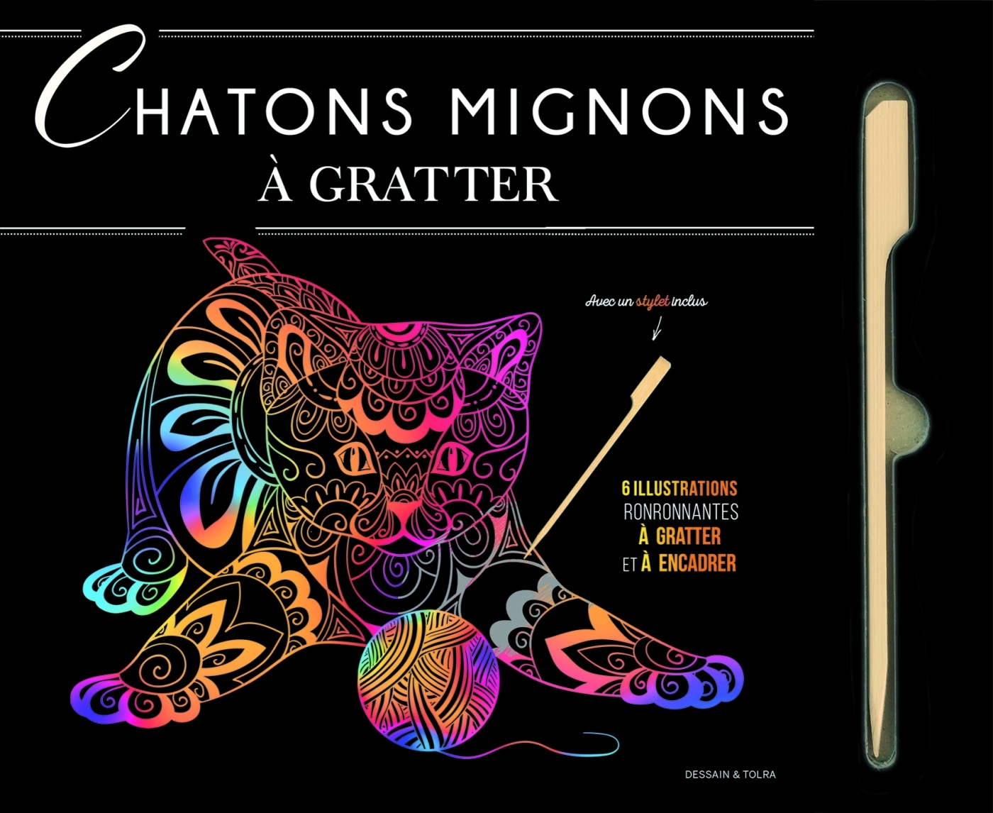 Joueurs, espiègles, coquins ou copains… découvrez dans ce livre 6 cartes à gratter détachables ornées d’adorables chatons. Choisissez le modèle qui vous inspire et munissez-vous du stylet inclus. Grattez les contours des dessins, leurs fins ornements : ils s’illuminent d’un superbe dégradé pour un effet coloré ! Au gré de vos envies, enrichissez votre illustration de motifs, de dessins, de textes… et découvrez quelles nuances se cachent derrière le fond noir. Suivez votre inspiration, tout est permis !