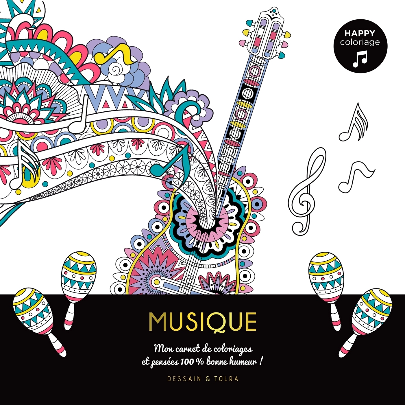 Choisis l’illustration de ton choix, découvre la citation qui l’accompagne et laisse parler ta créativité. Un univers musical, gai et festif prendra vie au gré de ton inspiration ! 72 coloriages pour une immersion musicale !