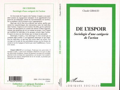 Ce livre traite de l'espoir et de l'action. L'espoir y est considéré comme un engagement rationnel. Quel que soit le lieu où se déroule une action, quelles que soient les interactions entre les individus dans l'action, l'espoir en est le moteur. Qu'il se présente comme une anticipation ou comme une attente d'effets supposés, comme une projection de soi ou comme un projet, c'est l'espoir qui mobilise les individus et les groupes sociaux dans l'action. L'espoir est ainsi une des formes que se donne la rationalité.
