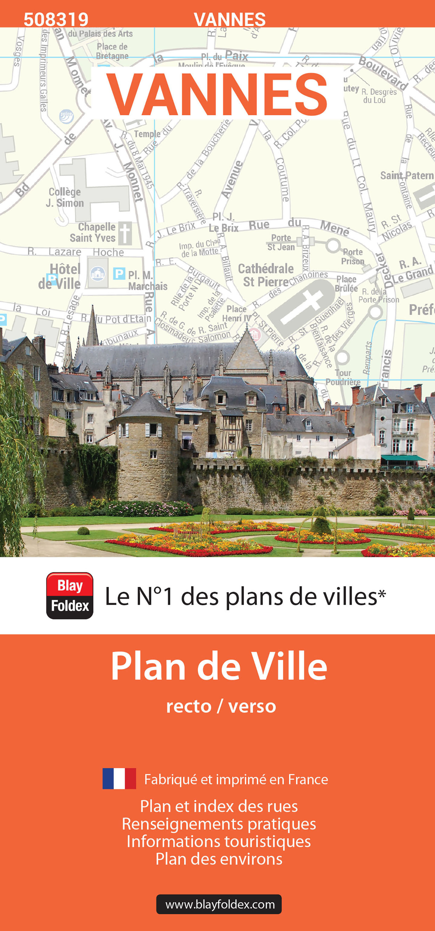 Le plan de ville de Vannes indique les principaux sites et monuments à visiter : la Cathédrale Saint-Pierre, l’Hôtel de Limur, l’Hôtel de ville, le Musée de la Cohue, les Remparts, le Château Gaillard, le Musée archéologique, le Palais des Arts et des Congrès ou encore la place des Lices. Ce plan de ville contient l’ensemble des rues avec leur nom, les principaux bâtiments publics et touristiques. Un index complet des rues et des bâtiments vous permet de vous repérer très facilement. Il couvre les communes de Vannes, Saint-Avé et Séné.