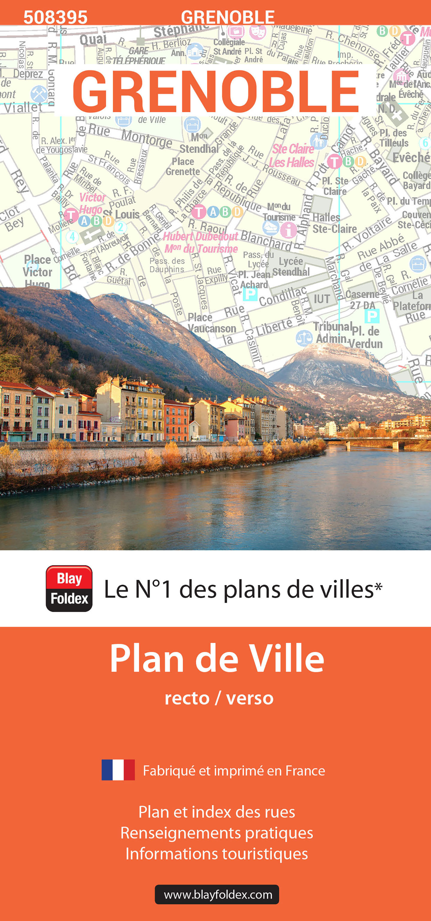 Le plan de ville de Grenoble indique les principaux sites et monuments à visiter : le téléphérique et le Fort de la Bastille, la place Notre-Dame, la Place Grenette, la Collégiale Saint-André, la Cathédrale Notre-Dame de Grenoble, l’Eglise Saint-Hugues, le Musée de Grenoble, le Musée Dauphinois, le Musée de l’Ancien Evêché, le Musée de la Résistance et de la Déportation, le Muséum d’Histoire Naturelle, le Musée des Troupes de Montagne, le Musée Archéologique Grenoble Saint-Laurent, le Musée Stendhal, Le Centre National d’Art Contemporain (CNAC) ou encore le Centre d’Art Bastille. Ce plan de ville contient l’ensemble des rues avec leur nom, les principaux bâtiments publics et touristiques. Un index complet des rues et des bâtiments vous permet de vous repérer très facilement. Il couvre les communes de Grenoble, Echirolles, Eybens, Gières, Saint-Martin-d’Hères et Tronche.