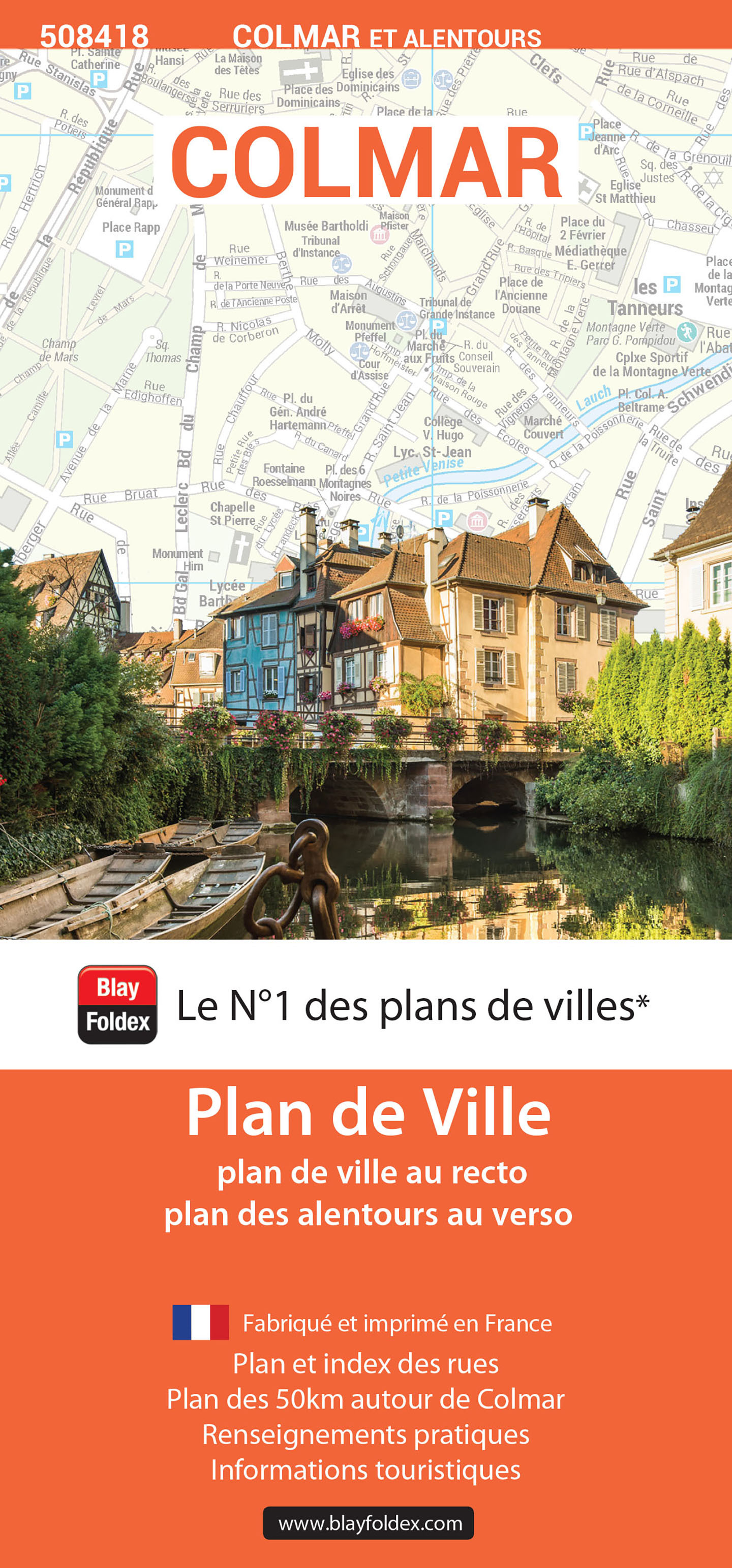 Le plan de ville de Colmar indique les principaux sites et monuments à visiter : la Vieille ville, la Petite Venise, la collégiale Saint-Martin, le Musée d’Unterlinden, le Musée Batholdi, le Muséum d’Histoire Naturelle et d’Ethnographie, le Musée du jouet et des Petits Trains, l’Ancienne Douane (Koïfhus), la Maison des Têtes, la Place Rapp et le monument du Général Rapp ou encore le Pont Saint-Pierre. Ce plan de ville contient l’ensemble des rues avec leur nom, les principaux bâtiments publics et touristiques. Un index complet des rues et des bâtiments vous permet de vous repérer très facilement. Il couvre la commune de Colmar.