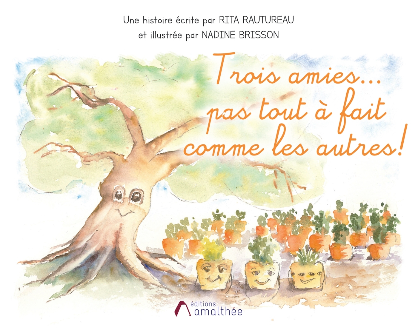 Agathe, Clémentine et Sophie sont trois carottes inséparables pas tout à fait comme les autres… Sous le regard bienveillant de leur ami le grand chêne, elles mènent une vie paisible en attendant d’être mangées mais pas avant d’avoir voyagé ! Le destin s’invite alors et entraîne nos trois carottes vers la plus belle histoire de leur vie… Prendre son destin en main, accepter la différence et croire en ses rêves, voilà ce que nous réservent nos amies carottes. Accompagnées de trois navets avides de liberté et d’une famille lapin anticonformiste, elles nous prouvent que tout est possible et que la vie nous appartient… À nous d’en faire une aventure extraordinaire ! « Trois amies… pas tout à fait comme les autres ! » est né de deux coeurs et quatre mains. Professeur des écoles, Rita Rautureau aime entraîner ses élèves dans l’univers des belles histoires et partager avec eux la magie des mots et des images. Assistante maternelle, Nadine Brisson est passionnée par le dessin et la peinture. Vice-présidente de la Bruffière des Arts, elle partage son temps entre les enfants, la création et la transmission. Ensemble, elles livrent une histoire touchante déclinée en deux albums illustrés, une version française pour les plus petits et une version bilingue français/anglais pour les plus grands. À partir de 3 ans