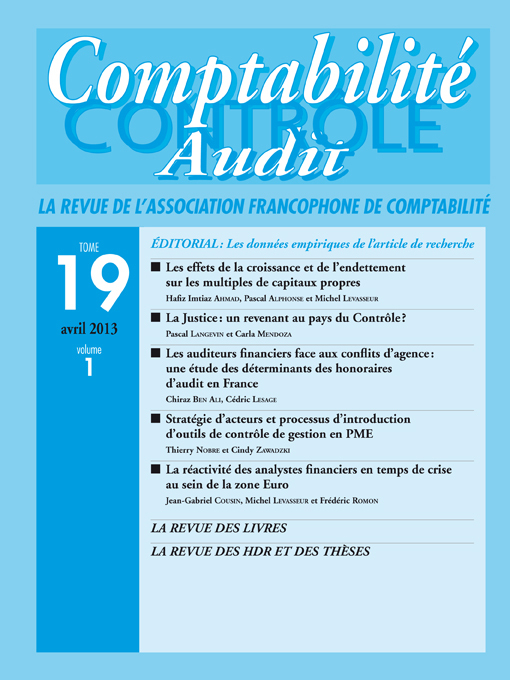 Revue Comptabilité, Contrôle, Audit, Volume 19, Tome 1