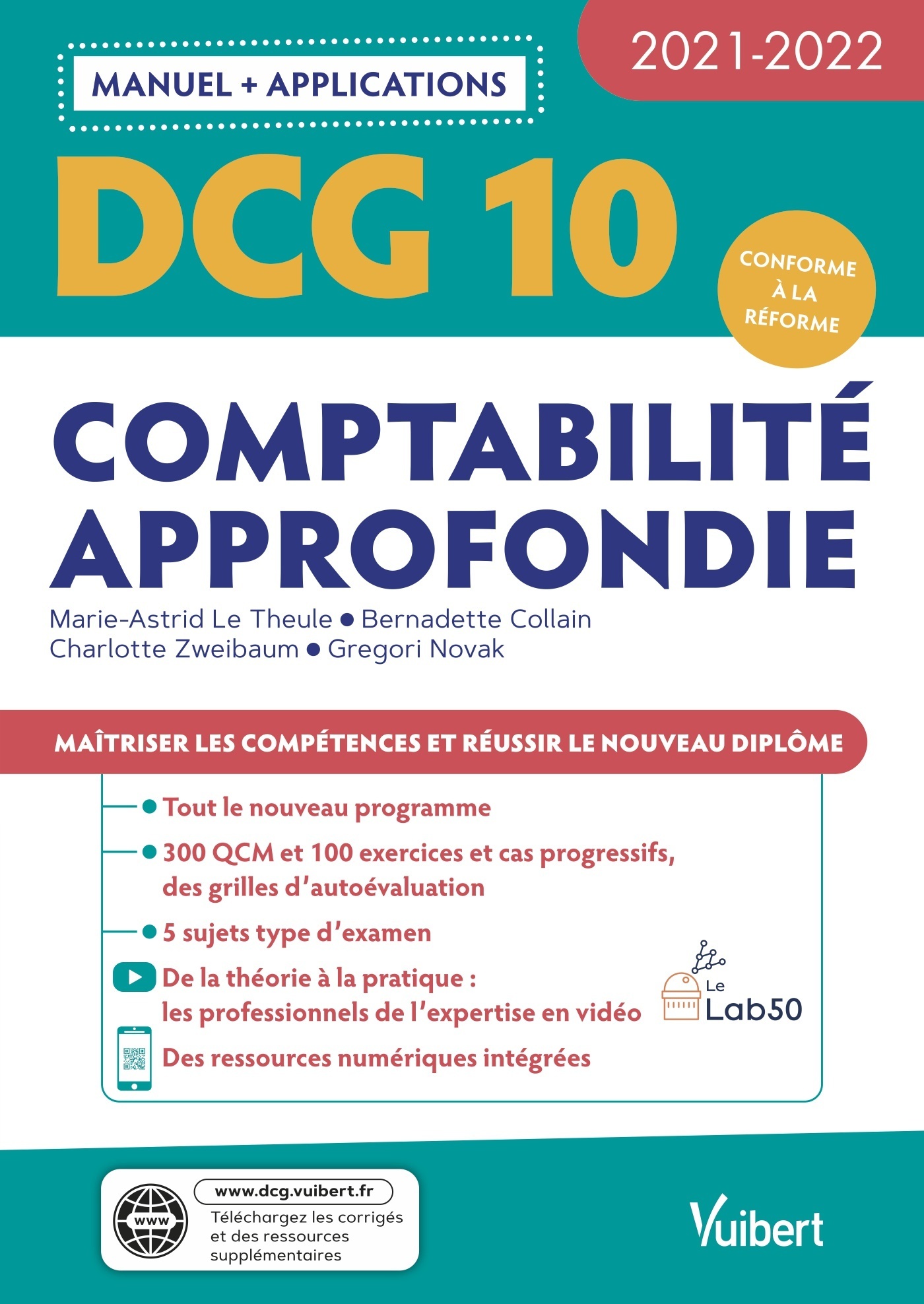 Préparez efficacement le DCG 10 Comptabilité approfondie avec un manuel et des ressources interactives pour réviser et s’entraîner [FLASH INFO] Rendez-vous sur le site de l’éditeur pour découvrir l’espace dédié DCG De nombreuses ressources gratuites sont mises à disposition ! Tout le nouveau programme du DCG 10 Comptabilité approfondie Maîtriser tous les savoirs et les compétences Un cours complet et visuel 130 définitions de notions clés Des fiches méthode pour comprendre les attentes de l’examen Des mises en situation 130 exemples concrets 20 schémas de synthèse pour réviser efficacement Vidéo de professionnels de l’expertise , en partenariat avec le Lab50 S’entraîner de manière intensive au DCG 10 Comptabilité approfondie 300 QCM et 100 exercices de difficulté progressive Des cas pratiques guidés et corrigés Des grilles pour s’autoévaluer Des ressources à flasher pour réviser : QCM interactifs, flashcards 5 sujets type d’examen pour être prêt le jour J Retrouvez sur le site dédié à la collection de manuels DCG Vuibert : les corrigés des applications offert des schémas de synthèse pour réviser efficacement des conseils pour bien préparer l’examen des conseils pour apprendre à utiliser le mind mapping