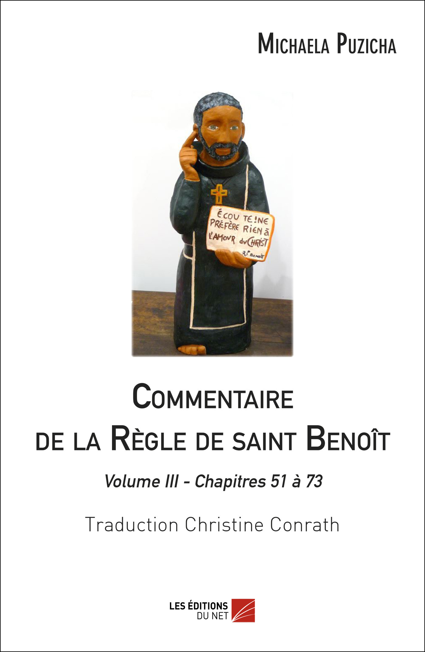 Les Editions du Net ont édité en janvier 2015 ce Commentaire de la Règle, en deux volumes. Pourquoi cette réédition ? Dans un souci d’économie, la première édition avait été allégée du texte de la Règle de saint Benoît, supposé connu et facilement accessible. Ce choix s’est avéré regrettable pour le confort de la lecture, et surtout pour l’étude de la Règle. Voici donc une seconde édition, qui se déploie cette fois en trois volumes de quelques trois cent pages – pour préserver le format commode d’un ‘manuel d’étude’. Chacun des 73 chapitres de la Règle est minutieusement étudié, verset après verset. L’auteur présente d’abord la place dudit chapitre dans l’ensemble bien charpentée de la Règle, puis son enracinement biblique. Suivent ensuite les sources monastiques et patristiques, et enfin le commentaire proprement dit. Certains blocs thématiques jouissent d’une présentation plus conséquente, par exemple les chapitres 8 à 18 sur la prière chorale, les chapitres 23 à 30 et 43 à 46 sur les manquements - pour mieux montrer la dynamique de la conversion monastique, ou encore l’équilibre fragile entre travail manuel et labeur spirituel. Si les remarques de Sœur Michaela sur les citations scripturaires sont très pertinentes – au sixième siècle on commente l’Écriture par l’Écriture –, le travail sur les sources monastique et patristiques est particulièrement fouillé. Tous ceux qui souhaitent se mettre « à l’école du service du Seigneur » plongeront avec profit dans ce commentaire savoureux de notre « toute petite règle » bénédictine. Voici le troisième et dernier volume de l'ensemble.