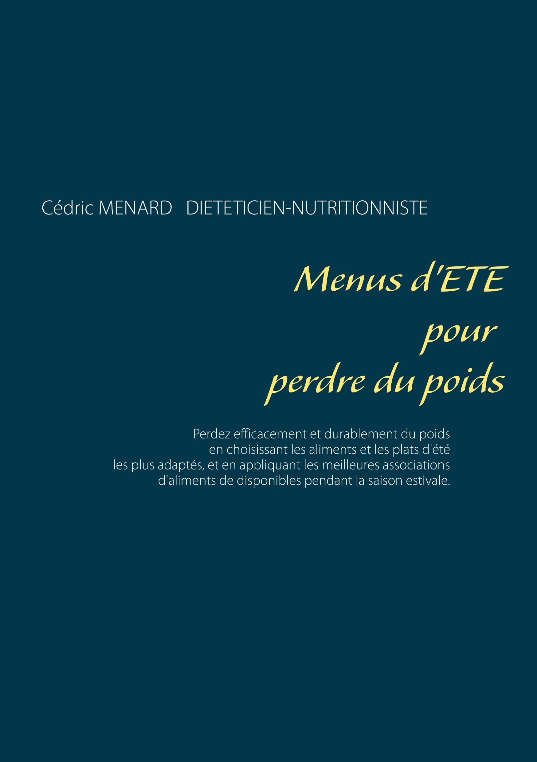 Cet ouvrage est dédié à toutes les personnes désireuses de perdre du poids, et il offre aux détenteurs des ouvrages du même auteur : " Apprenez à manger & maigrissez !" et " Recettes et menus pour perdre du poids" un ouvrage parfaitement complémentaire. L'auteur vous propose trois mois de menus spécifiquement adaptés à votre rééquilibrage alimentaire amaigrissant tous très simples à mettre en pratique grâce à des plats, des légumes et des fruits d'été vous étant proposés, vous permettant ainsi de vivre un amaigrissement de qualité optimale. Un ouvrage diététique de référence pour celles et ceux qui souhaitent efficacement et durablement perdre du poids !
