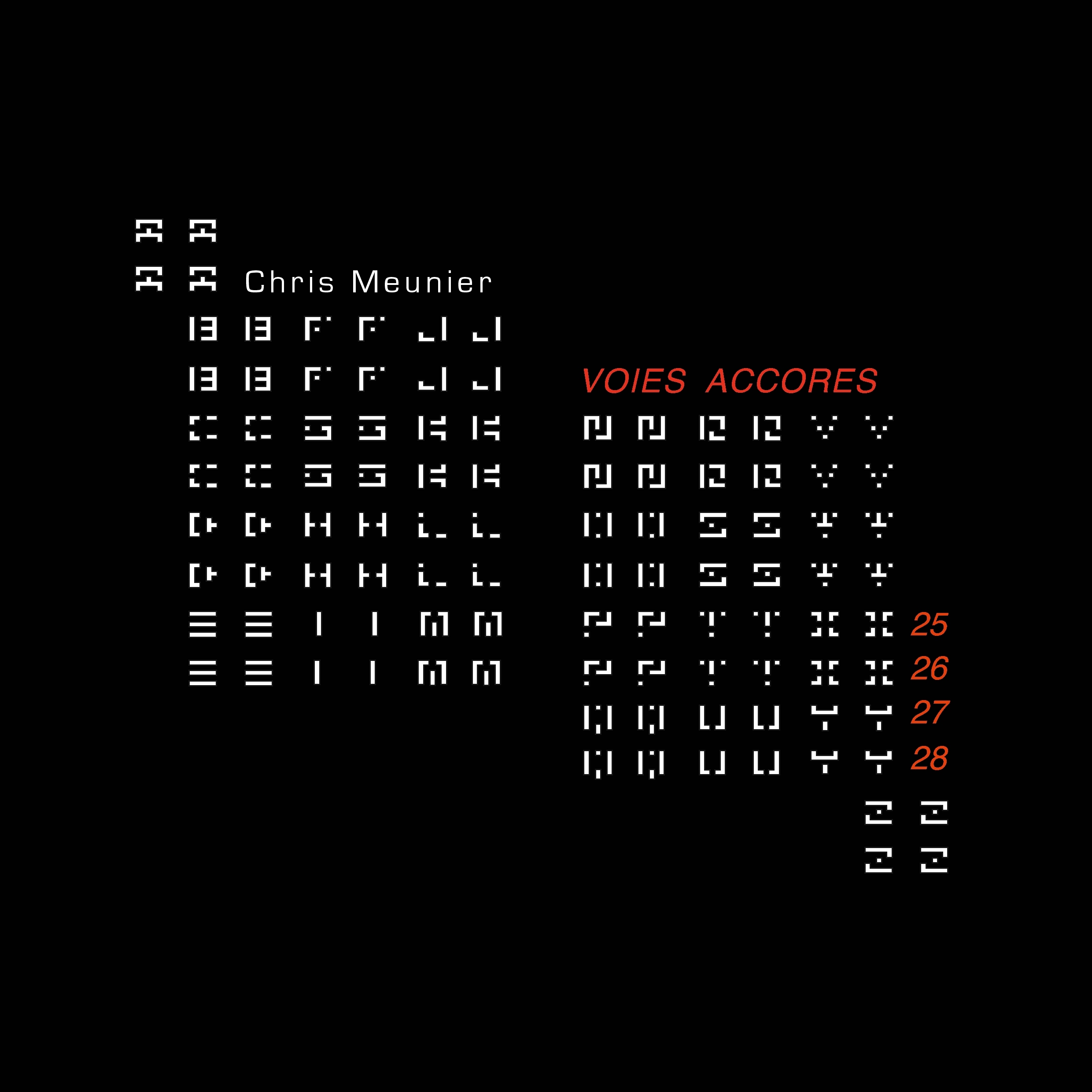 Ceci n'est pas un livre d'Histoire. C'est un livre d'histoires au pluriel. C'est moi debout face à ces histoires. C'est un face à face entre eux, tous ces disparus, toute cette horreur et moi, écrivant. J'ai voulu dialoguer avec eux, ici, maintenant. C'est parti d'un réel besoin, individuel et politique sans prétendre à aucune vérité. C'est ce que je devais faire. C'est tout. Je crois, avec d'autres, que ce génocide central du XXème siècle est sans commune mesure dans l'histoire de l'humanité et qu'à ce titre, en tant qu'artiste, je deviens témoin des témoins. Re-transcrire. Ré-ordonner en désordonnant aussi. Peut-être me fallait-il violenter la violence elle-même, pour lui extirper autre chose que ce qu'on comprend ou ressent immédiatement. Lui résister à cette violence des faits pour en réchapper et offrir d'autres possibles par des phénomènes de renversement. Tout au long du travail qui a commencé en 1994, ce furent tour à tour ou parallèlement, la Yougoslavie, le Rwanda, l'Algérie et évidemment beaucoup d'autres événements. Il s'est agi de re-transcrire les perceptions de toutes ces réalités mêlées, mêlées aussi avec ma propre histoire, soit tout ce qui se passe dans la vie de chacun en fonction de ses activités physiques et psychiques. Ça s'entrecroise. C'est en mouvement. C'est un mouvement incessant d'affleurements et de retraits. Chris Meunier De ce temps-là à ce temps-ci le livre se déplie, s'invente, s'architecture. Cinquante-deux livrets composent Voies accores, correspondant aux cinquante-deux semaines d'une année. Ces livrets rassemblés forment un tout saisissant où l'Histoire, le récit, le témoignage, l'actualité, le poème, la photographie se frottent, se superposent, se font face, se questionnent. Un cénotaphe où l'excès de ténèbres et l'excès de lumières provoque les yeux, la tête, les jambes...et révèle la présence d'absences. Aujourd'hui. Pour demain. Ce qui s'est passé hier. Où se situer dans les langues et leur vocabulaire ? Inventer d'autres mots ou se contenter de ceux qui existent ? Ces expériences engagent l'artiste, l'auteur, à trouver sa propre parole dans le désir de transmettre à son tour. Le livre alors se crée. Jean-Christophe Vermot-Gauchy