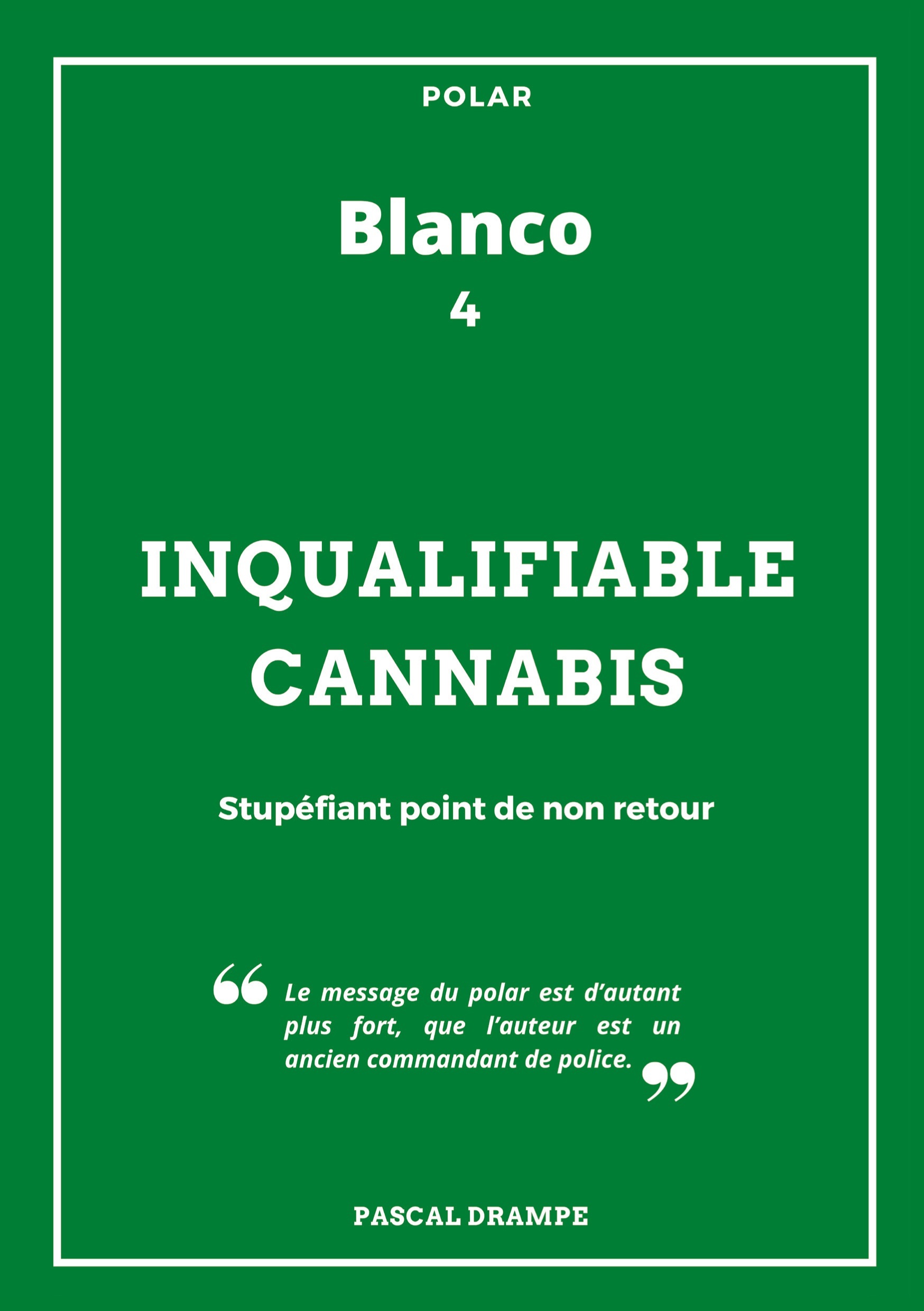 Ne dérogeant pas à sa règle que chacun de ses polars doit passer un message fort, Blanco aborde ici un sujet d'actualité, "le cannabis". Fidèle à ses précédents polars, celui-ci en possède tous les artifices: intrigue, suspens, rebondissements, contrepieds. Le commandant Blanco met en place une affaire d'entrisme pour démanteler un réseau de trafic international de résine de cannabis, entre le Maroc et les Pays-Bas, il y injecte un élève officier de police, Kamel, qu'il recrute au sein de l'école. Ce jeune flic va connaître des évènements invraisemblables...