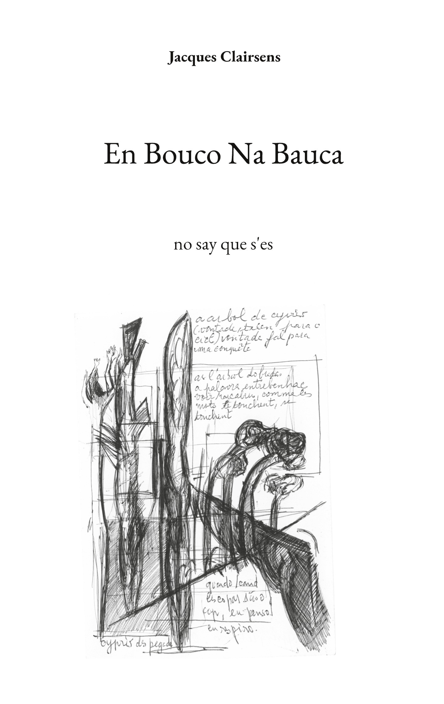 Le recueil "En Bouco Na Bauca" fut écrit entre 2020 et 2022, en pensant à l'alouette de Bernard de Ventadorn en train de choir. Il ne raconte pas ce que Jacques Clairsens a vu ou rencontré lors de son voyage. Au contraire, ce recueil survole les vers des troubadours dits par une étrange bouche (Bouco) dans un territoire perdu (Bauca), entre la Galice et la Provence.