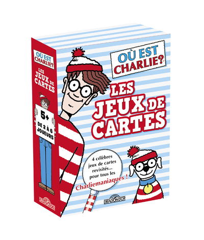 Amusez-vous grâce à 4 célèbres jeux de cartes revisités pour tous les fans de Charlie ! Avec 50 cartes, multipliez les parties de jeux aux côtés de Charlie et ses amis. Dans une même boîte, vous aurez la possibilité de jouer à 4 célèbres jeux revisités : Félicie-tation, Un pour tous, tous pour Ouaf, Le jeu des Charliemaniaques et Pouah-thétique. Quel sera votre jeu favori ? Pour s'amuser encore plus avec Où est Charlie ? , découvrez le grand jeu de société et les escape game !