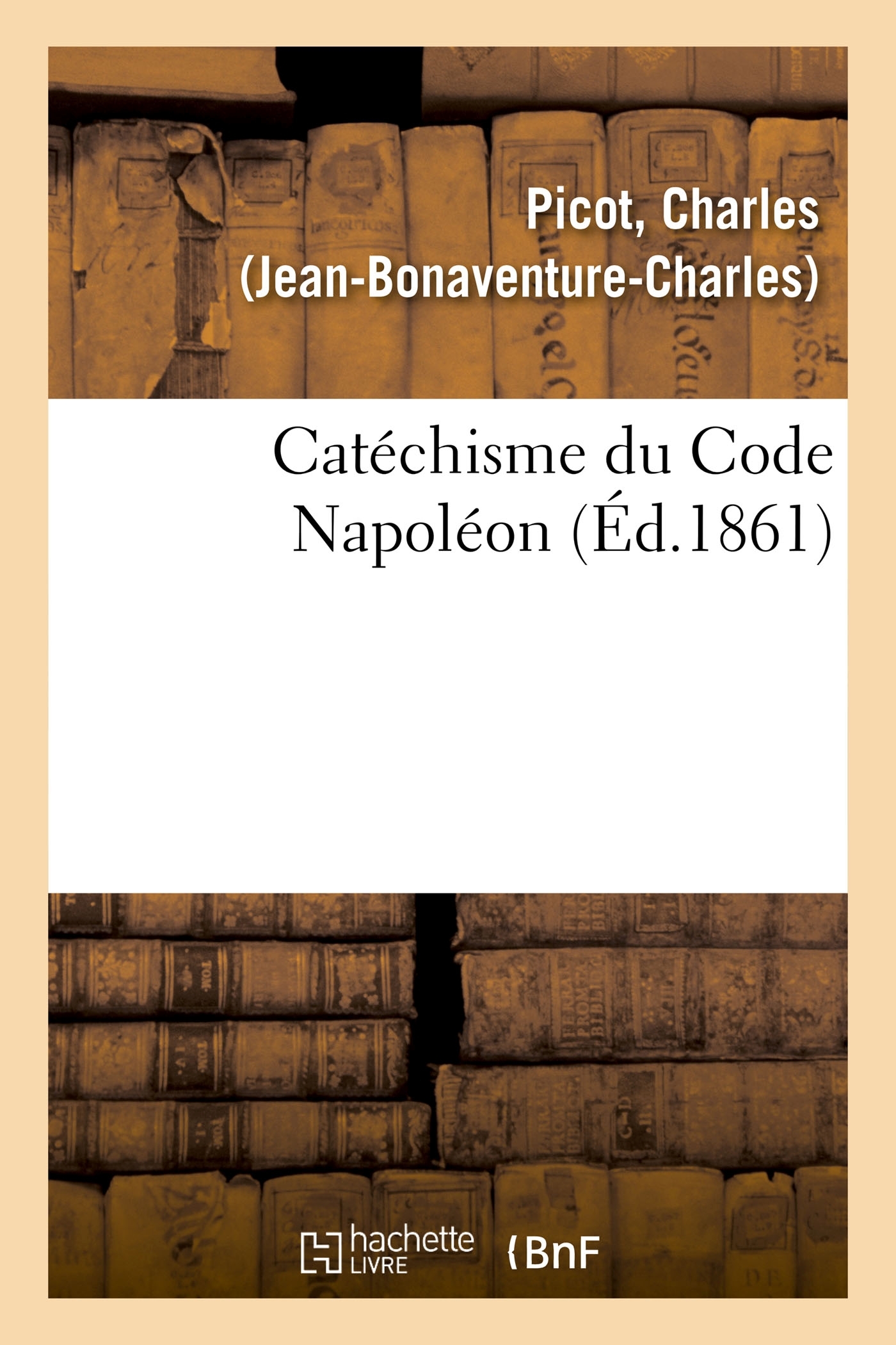 Catéchisme du Code Napoléon... / par J.-B.-C. Picot,... Date de l'édition originale : 1861 Le présent ouvrage s'inscrit dans une politique de conservation patrimoniale des ouvrages de la littérature Française mise en place avec la BNF. HACHETTE LIVRE et la BNF proposent ainsi un catalogue de titres indisponibles, la BNF ayant numérisé ces oeuvres et HACHETTE LIVRE les imprimant à la demande. Certains de ces ouvrages reflètent des courants de pensée caractéristiques de leur époque, mais qui seraient aujourd'hui jugés condamnables. Ils n'en appartiennent pas moins à l'histoire des idées en France et sont susceptibles de présenter un intérêt scientifique ou historique. Le sens de notre démarche éditoriale consiste ainsi à permettre l'accès à ces oeuvres sans pour autant que nous en cautionnions en aucune façon le contenu. Pour plus d'informations, rendez-vous sur www.hachettebnf.fr