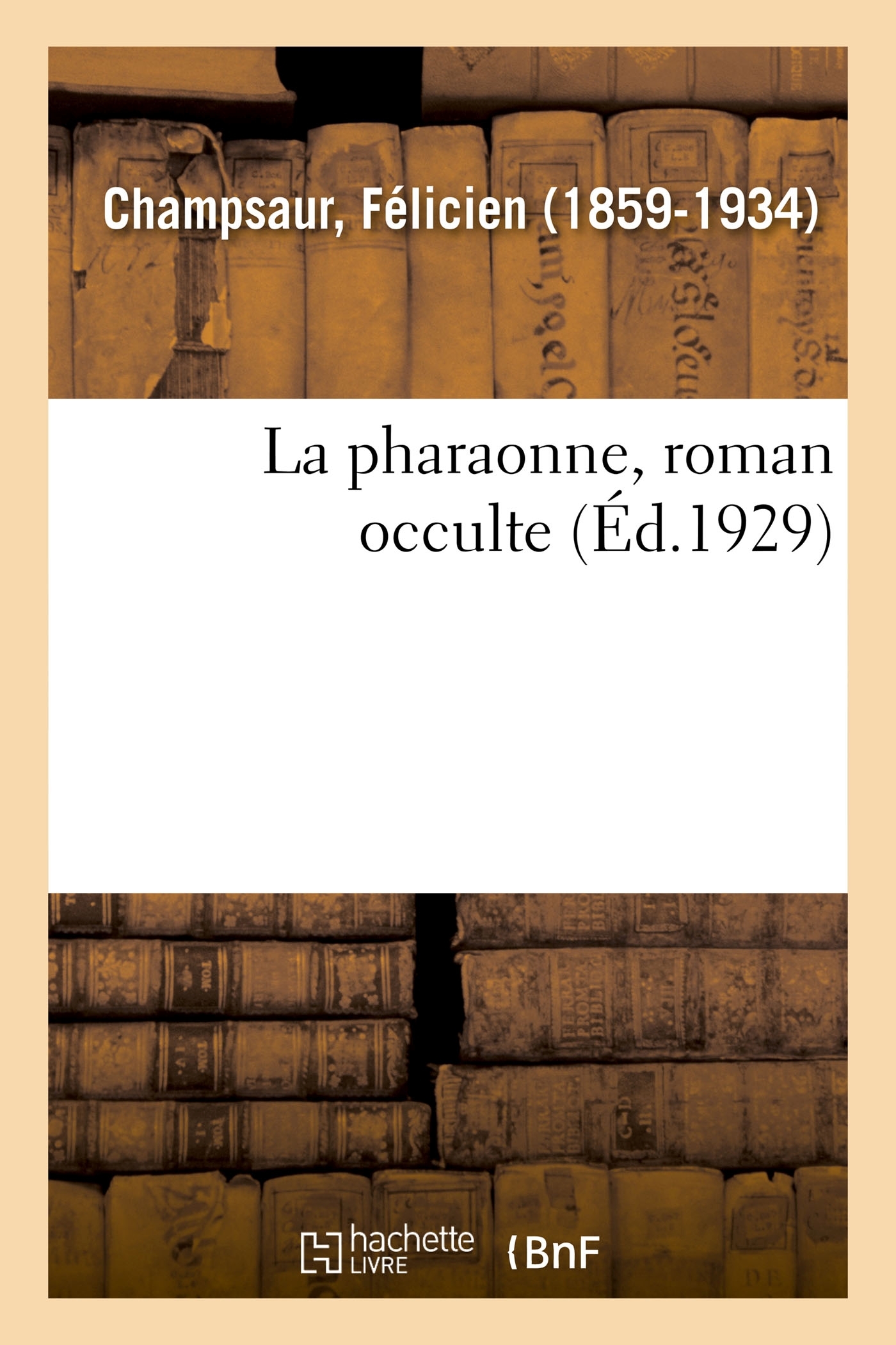 La pharaonne : roman occulte / Félicien Champsaur Date de l'édition originale : 1929 Le présent ouvrage s'inscrit dans une politique de conservation patrimoniale des ouvrages de la littérature Française mise en place avec la BNF. HACHETTE LIVRE et la BNF proposent ainsi un catalogue de titres indisponibles, la BNF ayant numérisé ces oeuvres et HACHETTE LIVRE les imprimant à la demande. Certains de ces ouvrages reflètent des courants de pensée caractéristiques de leur époque, mais qui seraient aujourd'hui jugés condamnables. Ils n'en appartiennent pas moins à l'histoire des idées en France et sont susceptibles de présenter un intérêt scientifique ou historique. Le sens de notre démarche éditoriale consiste ainsi à permettre l'accès à ces oeuvres sans pour autant que nous en cautionnions en aucune façon le contenu. Pour plus d'informations, rendez-vous sur www.hachettebnf.fr