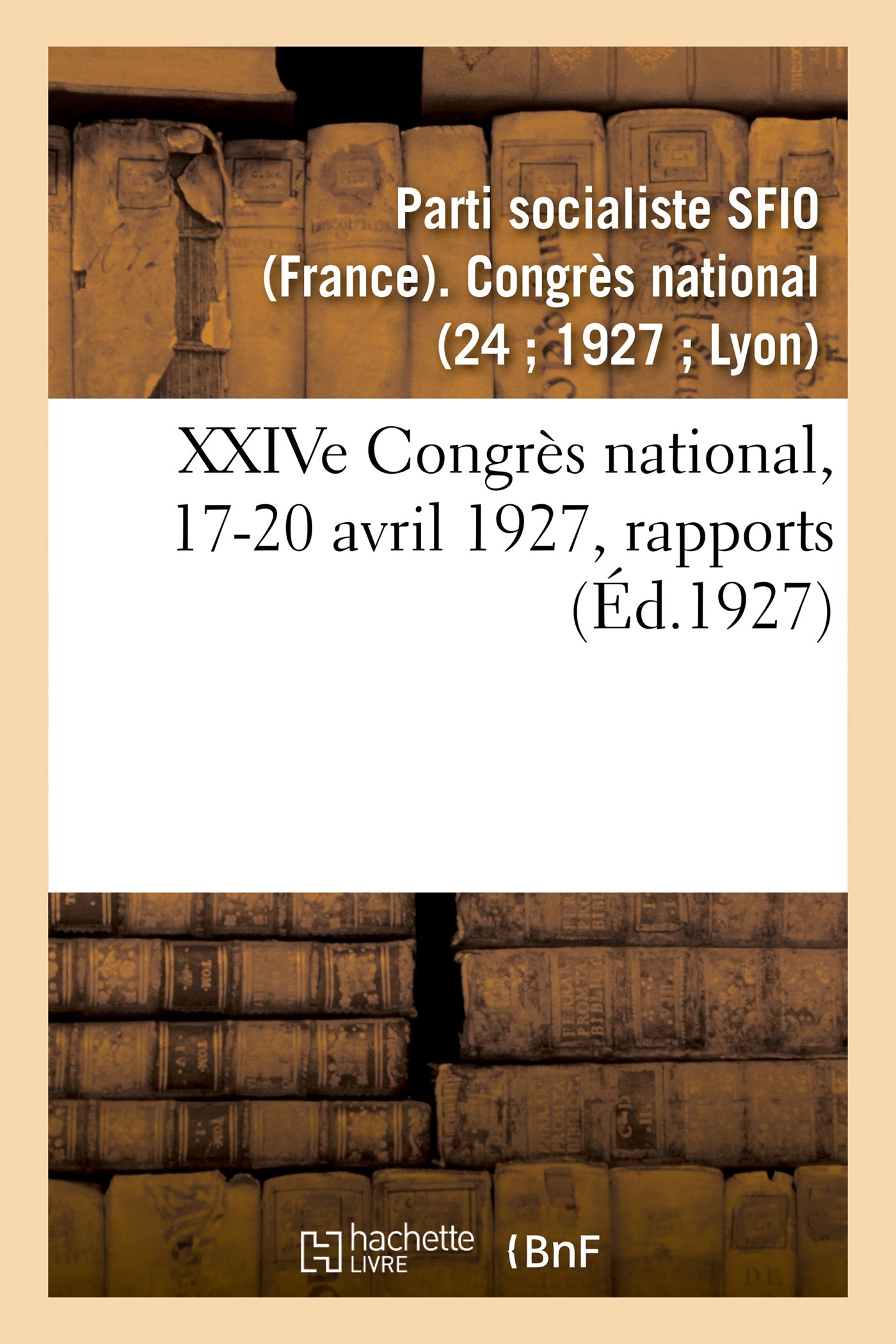 XXIVe Congrès national : 17, 18, 19 et 20 avril 1927 : rapports / Parti socialiste Date de l'édition originale : 1927 Le présent ouvrage s'inscrit dans une politique de conservation patrimoniale des ouvrages de la littérature Française mise en place avec la BNF. HACHETTE LIVRE et la BNF proposent ainsi un catalogue de titres indisponibles, la BNF ayant numérisé ces oeuvres et HACHETTE LIVRE les imprimant à la demande. Certains de ces ouvrages reflètent des courants de pensée caractéristiques de leur époque, mais qui seraient aujourd'hui jugés condamnables. Ils n'en appartiennent pas moins à l'histoire des idées en France et sont susceptibles de présenter un intérêt scientifique ou historique. Le sens de notre démarche éditoriale consiste ainsi à permettre l'accès à ces oeuvres sans pour autant que nous en cautionnions en aucune façon le contenu. Pour plus d'informations, rendez-vous sur www.hachettebnf.fr