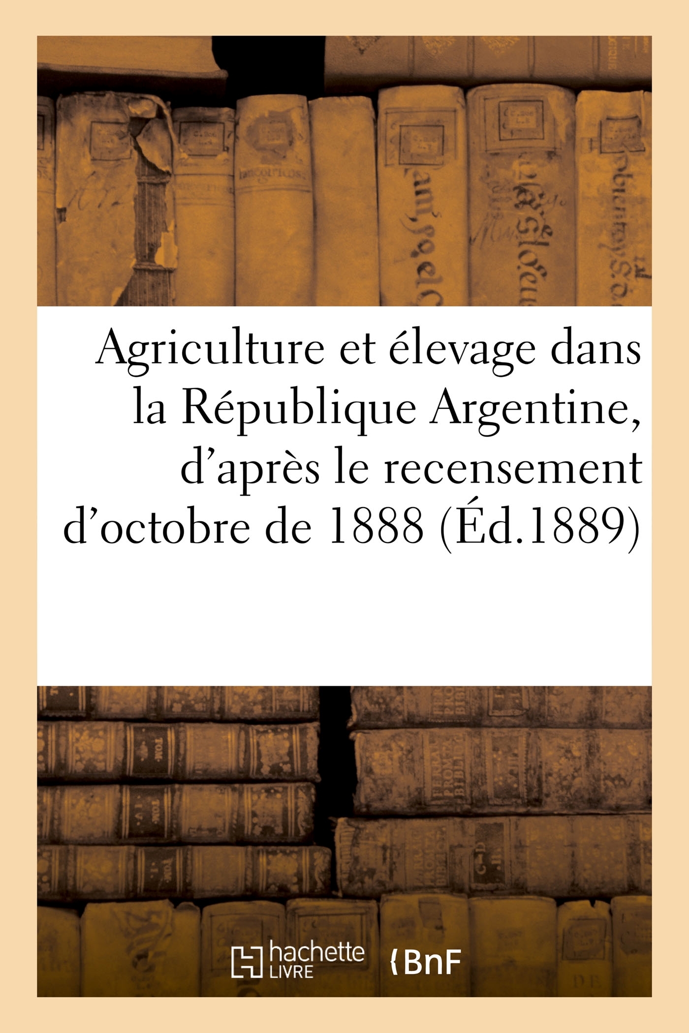L'agriculture et l'élevage dans la République Argentine : d'après le recensement de la première quinzaine d'octobre de 1888... / publié sous la direction de F. Latzina Date de l'édition originale : 1889 Le présent ouvrage s'inscrit dans une politique de conservation patrimoniale des ouvrages de la littérature Française mise en place avec la BNF. HACHETTE LIVRE et la BNF proposent ainsi un catalogue de titres indisponibles, la BNF ayant numérisé ces oeuvres et HACHETTE LIVRE les imprimant à la demande. Certains de ces ouvrages reflètent des courants de pensée caractéristiques de leur époque, mais qui seraient aujourd'hui jugés condamnables. Ils n'en appartiennent pas moins à l'histoire des idées en France et sont susceptibles de présenter un intérêt scientifique ou historique. Le sens de notre démarche éditoriale consiste ainsi à permettre l'accès à ces oeuvres sans pour autant que nous en cautionnions en aucune façon le contenu. Pour plus d'informations, rendez-vous sur www.hachettebnf.fr