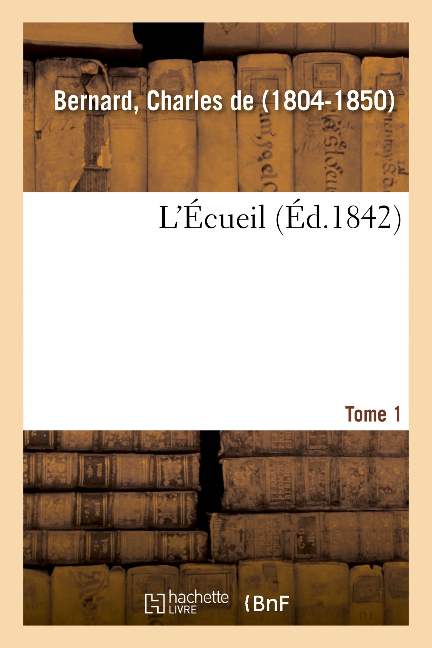 L'Écueil, par Charles de Bernard. Tome 1 http://gallica.bnf.fr/ark:/12148/bpt6k5727707q. Le présent ouvrage s'inscrit dans une politique de conservation patrimoniale des ouvrages de la littérature Française mise en place avec la BNF. HACHETTE LIVRE et la BNF proposent ainsi un catalogue de titres indisponibles, la BNF ayant numérisé ces oeuvres et HACHETTE LIVRE les imprimant à la demande. Certains de ces ouvrages reflètent des courants de pensée caractéristiques de leur époque, mais qui seraient aujourd'hui jugés condamnables. Ils n'en appartiennent pas moins à l'histoire des idées en France et sont susceptibles de présenter un intérêt scientifique ou historique. Le sens de notre démarche éditoriale consiste ainsi à permettre l'accès à ces oeuvres sans pour autant que nous en cautionnions en aucune façon le contenu. Pour plus d'informations, rendez-vous sur le site hachettebnf.fr.