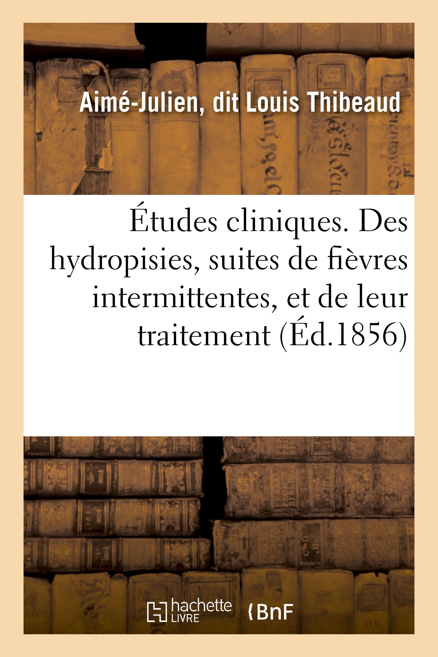 Études cliniques. Des hydropisies, suites de fièvres intermittentes, et de leur traitement, spécialement de l'acétate de potasse à haute dose, par M. Thibeaud,... Date de l'édition originale : 1856 Le présent ouvrage s'inscrit dans une politique de conservation patrimoniale des ouvrages de la littérature Française mise en place avec la BNF. HACHETTE LIVRE et la BNF proposent ainsi un catalogue de titres indisponibles, la BNF ayant numérisé ces oeuvres et HACHETTE LIVRE les imprimant à la demande. Certains de ces ouvrages reflètent des courants de pensée caractéristiques de leur époque, mais qui seraient aujourd'hui jugés condamnables. Ils n'en appartiennent pas moins à l'histoire des idées en France et sont susceptibles de présenter un intérêt scientifique ou historique. Le sens de notre démarche éditoriale consiste ainsi à permettre l'accès à ces oeuvres sans pour autant que nous en cautionnions en aucune façon le contenu. Pour plus d'informations, rendez-vous sur www.hachettebnf.fr