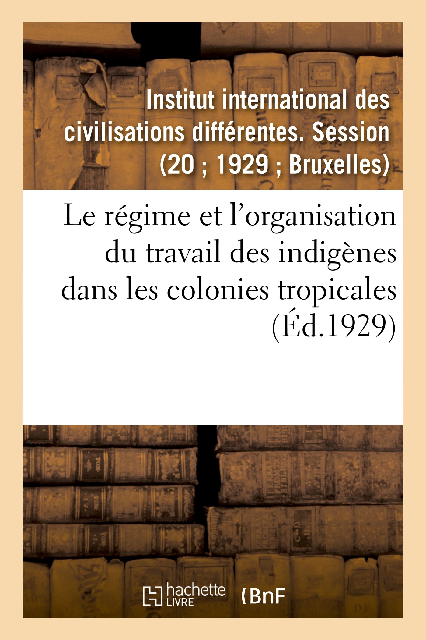 Le régime et l'organisation du travail des indigènes dans les colonies tropicales / Institut colonial international, session de Bruxelles de 1929 Date de l'édition originale : 1929 Le présent ouvrage s'inscrit dans une politique de conservation patrimoniale des ouvrages de la littérature Française mise en place avec la BNF. HACHETTE LIVRE et la BNF proposent ainsi un catalogue de titres indisponibles, la BNF ayant numérisé ces oeuvres et HACHETTE LIVRE les imprimant à la demande. Certains de ces ouvrages reflètent des courants de pensée caractéristiques de leur époque, mais qui seraient aujourd'hui jugés condamnables. Ils n'en appartiennent pas moins à l'histoire des idées en France et sont susceptibles de présenter un intérêt scientifique ou historique. Le sens de notre démarche éditoriale consiste ainsi à permettre l'accès à ces oeuvres sans pour autant que nous en cautionnions en aucune façon le contenu. Pour plus d'informations, rendez-vous sur www.hachettebnf.fr