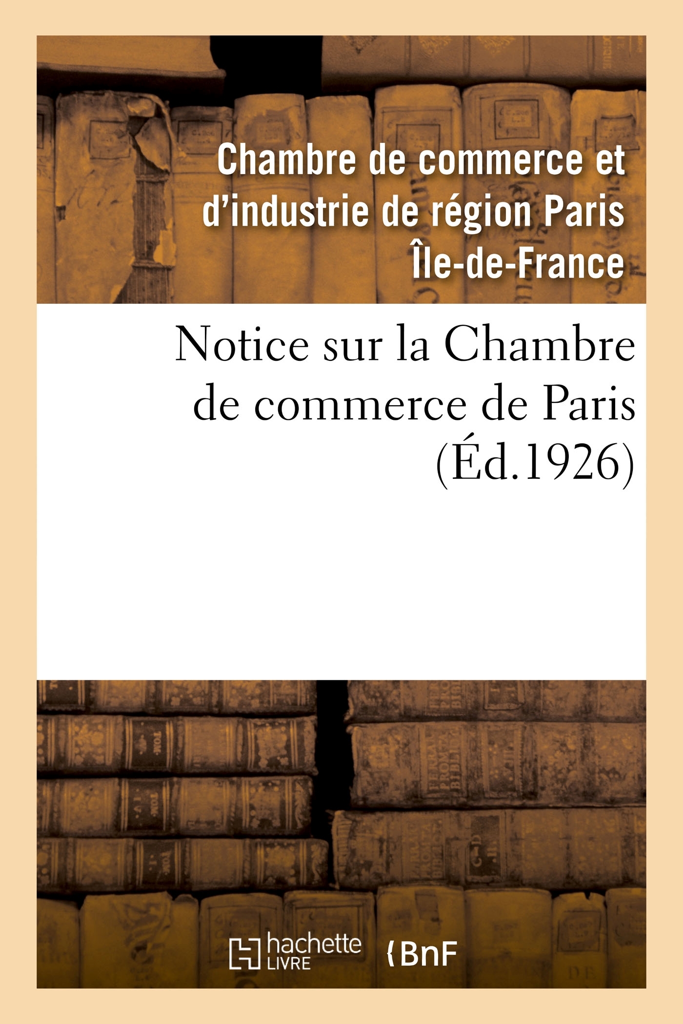 Notice sur la Chambre de commerce de Paris Date de l'édition originale : 1926 Le présent ouvrage s'inscrit dans une politique de conservation patrimoniale des ouvrages de la littérature Française mise en place avec la BNF. HACHETTE LIVRE et la BNF proposent ainsi un catalogue de titres indisponibles, la BNF ayant numérisé ces oeuvres et HACHETTE LIVRE les imprimant à la demande. Certains de ces ouvrages reflètent des courants de pensée caractéristiques de leur époque, mais qui seraient aujourd'hui jugés condamnables. Ils n'en appartiennent pas moins à l'histoire des idées en France et sont susceptibles de présenter un intérêt scientifique ou historique. Le sens de notre démarche éditoriale consiste ainsi à permettre l'accès à ces oeuvres sans pour autant que nous en cautionnions en aucune façon le contenu. Pour plus d'informations, rendez-vous sur www.hachettebnf.fr