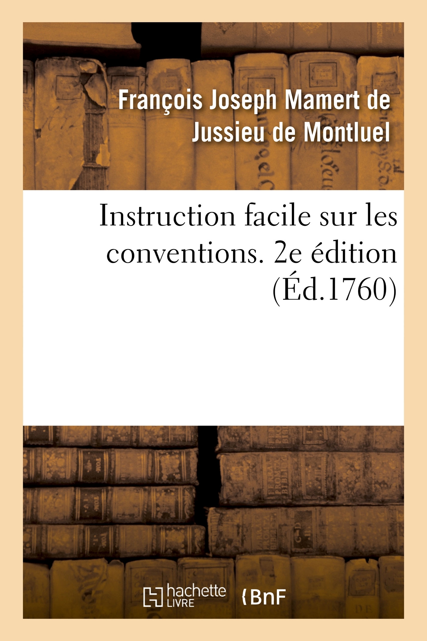 Instruction facile sur les conventions, ou Notions simples sur les divers engagements qu'on peut prendre dans la société & leurs suites... . Seconde édition... Date de l'édition originale : 1760 Le présent ouvrage s'inscrit dans une politique de conservation patrimoniale des ouvrages de la littérature Française mise en place avec la BNF. HACHETTE LIVRE et la BNF proposent ainsi un catalogue de titres indisponibles, la BNF ayant numérisé ces oeuvres et HACHETTE LIVRE les imprimant à la demande. Certains de ces ouvrages reflètent des courants de pensée caractéristiques de leur époque, mais qui seraient aujourd'hui jugés condamnables. Ils n'en appartiennent pas moins à l'histoire des idées en France et sont susceptibles de présenter un intérêt scientifique ou historique. Le sens de notre démarche éditoriale consiste ainsi à permettre l'accès à ces oeuvres sans pour autant que nous en cautionnions en aucune façon le contenu. Pour plus d'informations, rendez-vous sur www.hachettebnf.fr