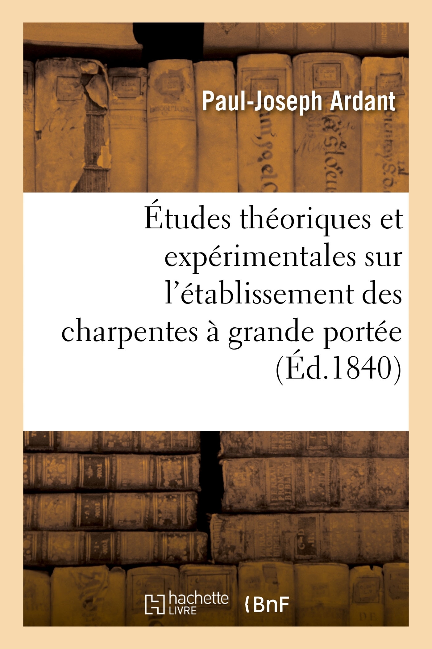 Études théoriques et expérimentales sur l'établissement des charpentes à grande portée / par P. Ardant,... Date de l'édition originale : 1840 Le présent ouvrage s'inscrit dans une politique de conservation patrimoniale des ouvrages de la littérature Française mise en place avec la BNF. HACHETTE LIVRE et la BNF proposent ainsi un catalogue de titres indisponibles, la BNF ayant numérisé ces oeuvres et HACHETTE LIVRE les imprimant à la demande. Certains de ces ouvrages reflètent des courants de pensée caractéristiques de leur époque, mais qui seraient aujourd'hui jugés condamnables. Ils n'en appartiennent pas moins à l'histoire des idées en France et sont susceptibles de présenter un intérêt scientifique ou historique. Le sens de notre démarche éditoriale consiste ainsi à permettre l'accès à ces oeuvres sans pour autant que nous en cautionnions en aucune façon le contenu. Pour plus d'informations, rendez-vous sur www.hachettebnf.fr